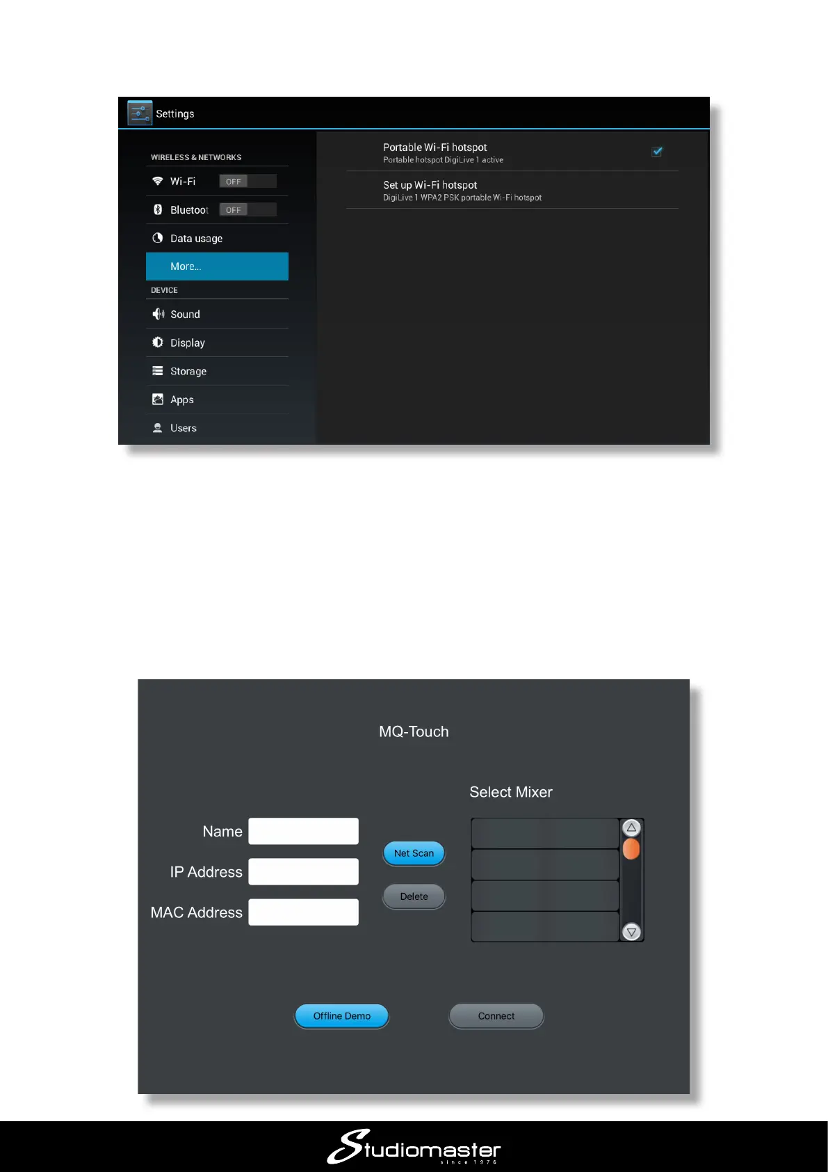 • Select the WiFi tab, choose DigiLive1 and enter the password.