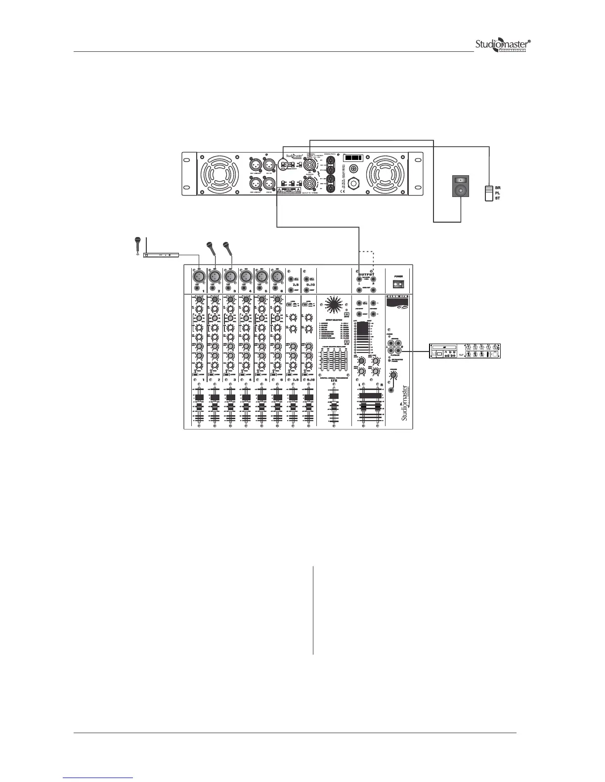 Note:- ‘Y’ cable to be used to make mono cable or use mono output of mixer.