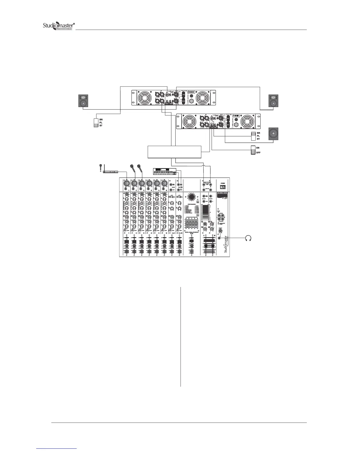 Studiomaster DPA 4500 - Application Example 1; Stereo Mix Plus Subwoofers