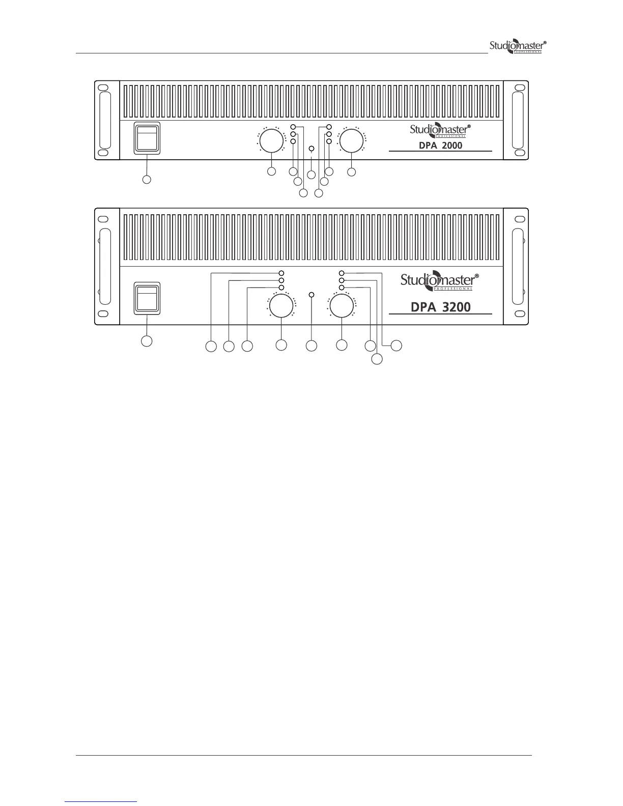 When lit, this blue LED indicates that amplifier is ON.