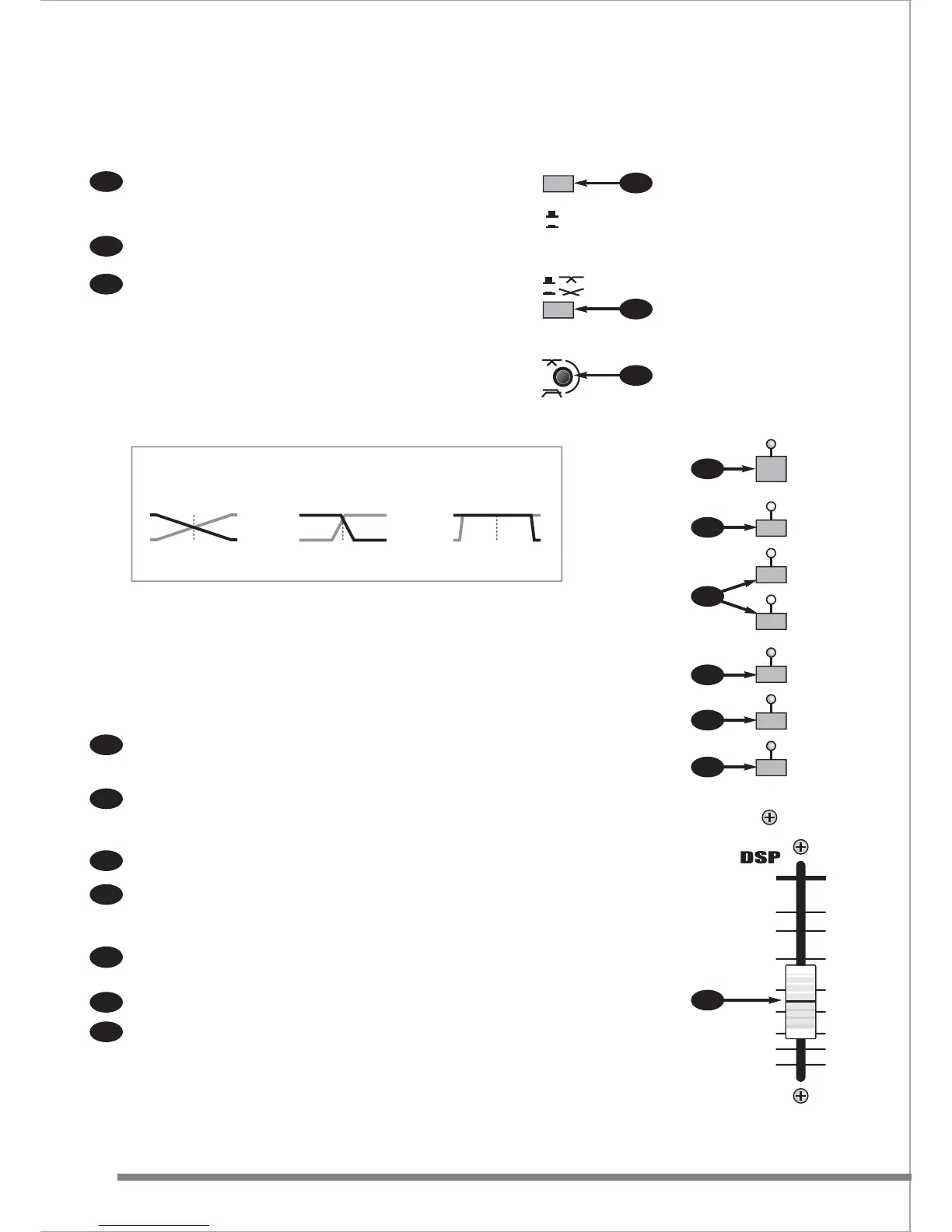 The TAPER 1 switch sets the cross-fader slopes. It switches