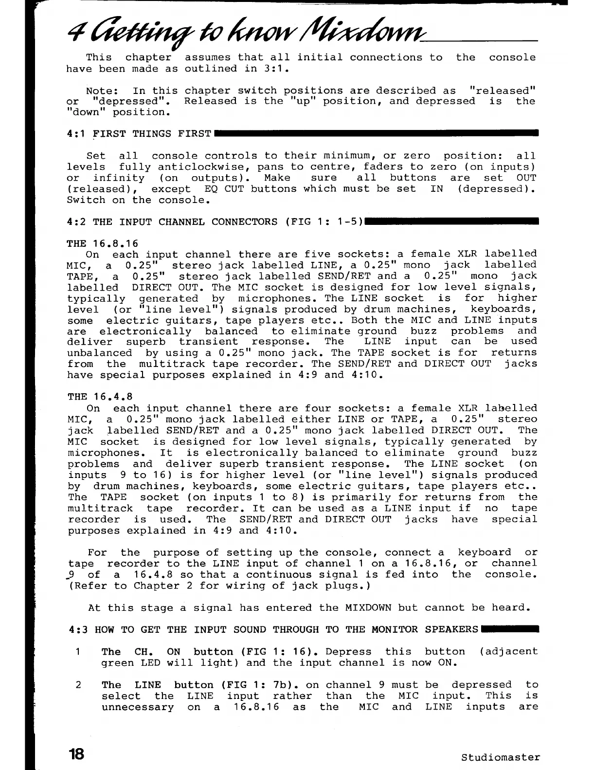 Studiomaster MIXDOWN - Getting to Know Mixdown; First Things First; Input Channel Connectors