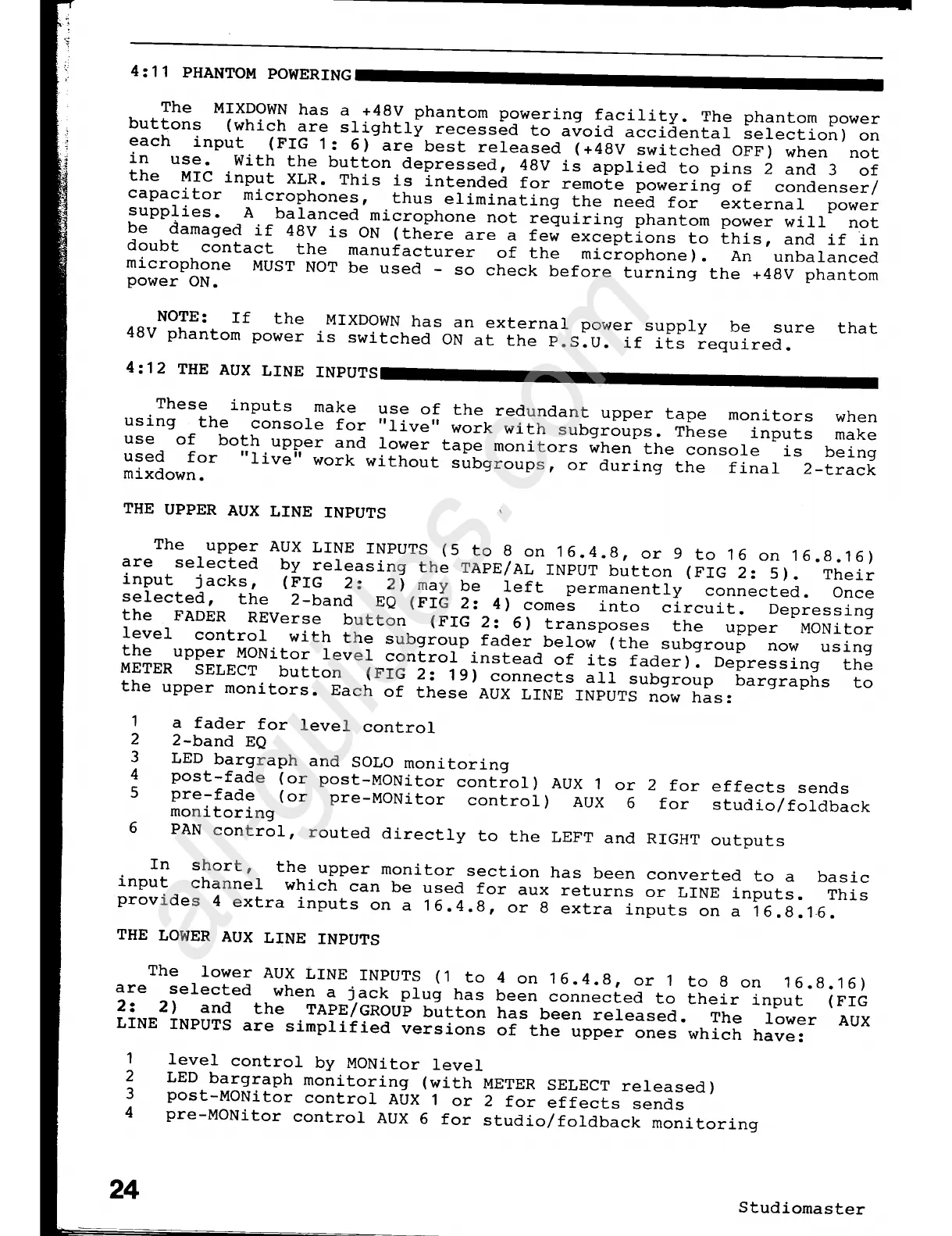 Studiomaster MIXDOWN - Phantom Powering and Aux Line Inputs