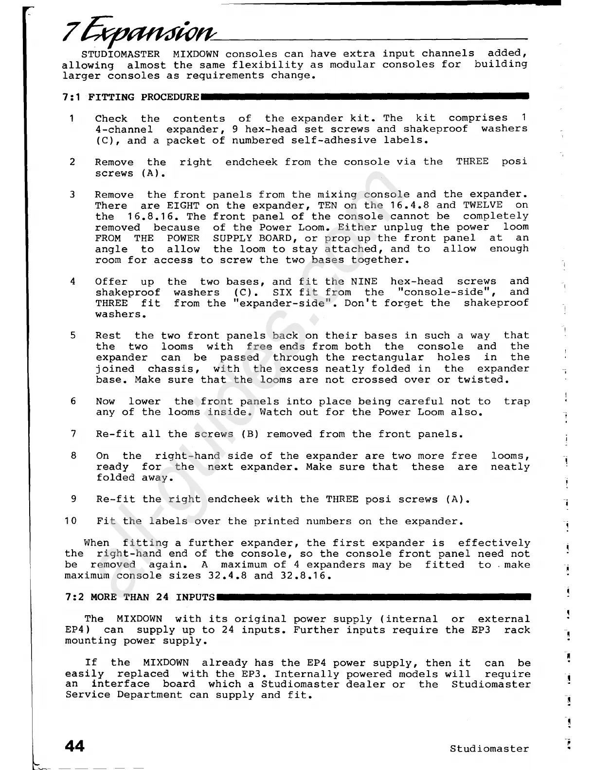 Studiomaster MIXDOWN - Expansion; Fitting Procedure for Expander Kits