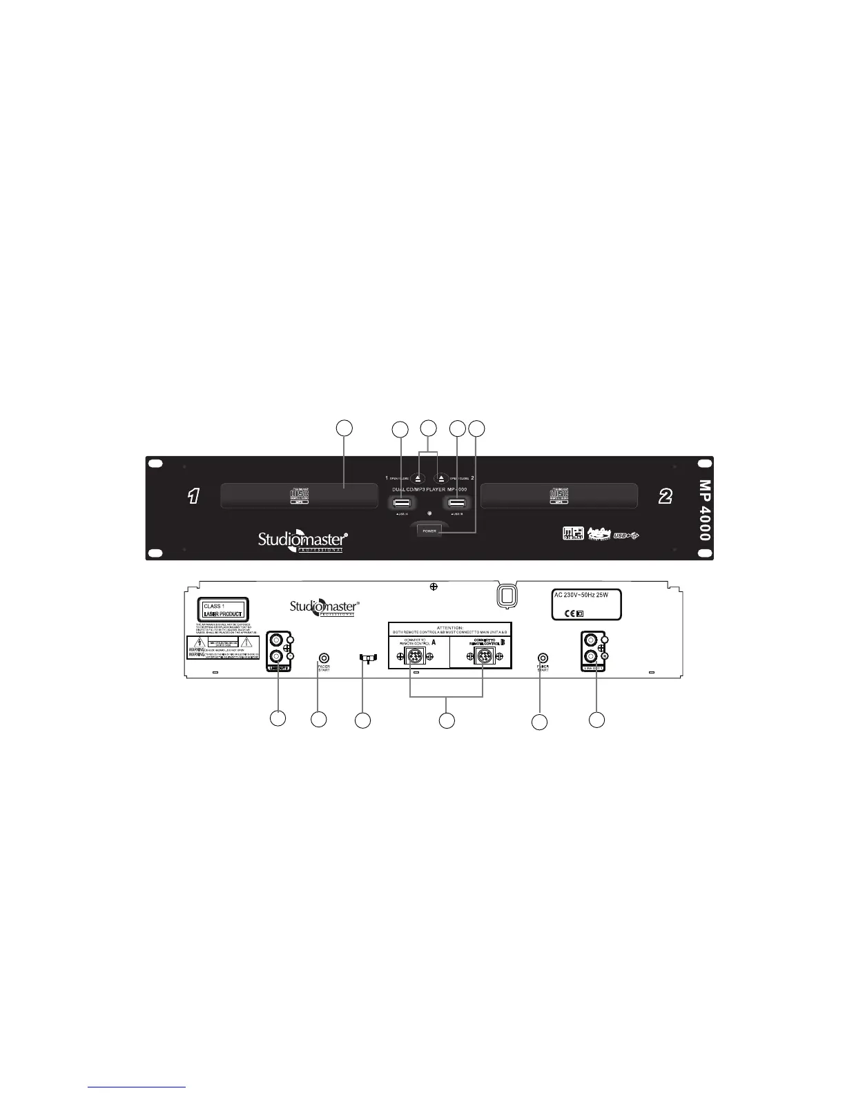 4. USB Port A & B: Connect a USB storage device to load audio files. It supports MP3 files format only.