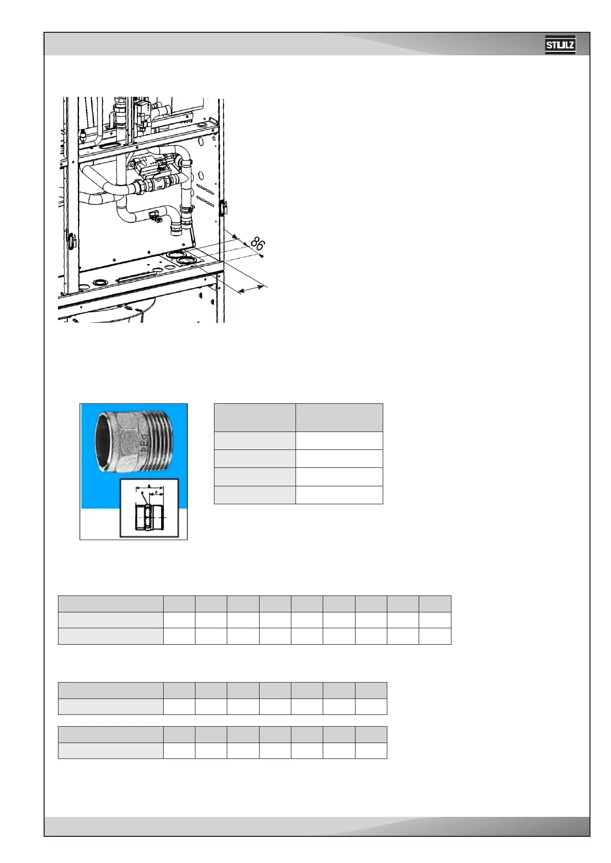 Water pipe connection (2 ref. circuits) in inches