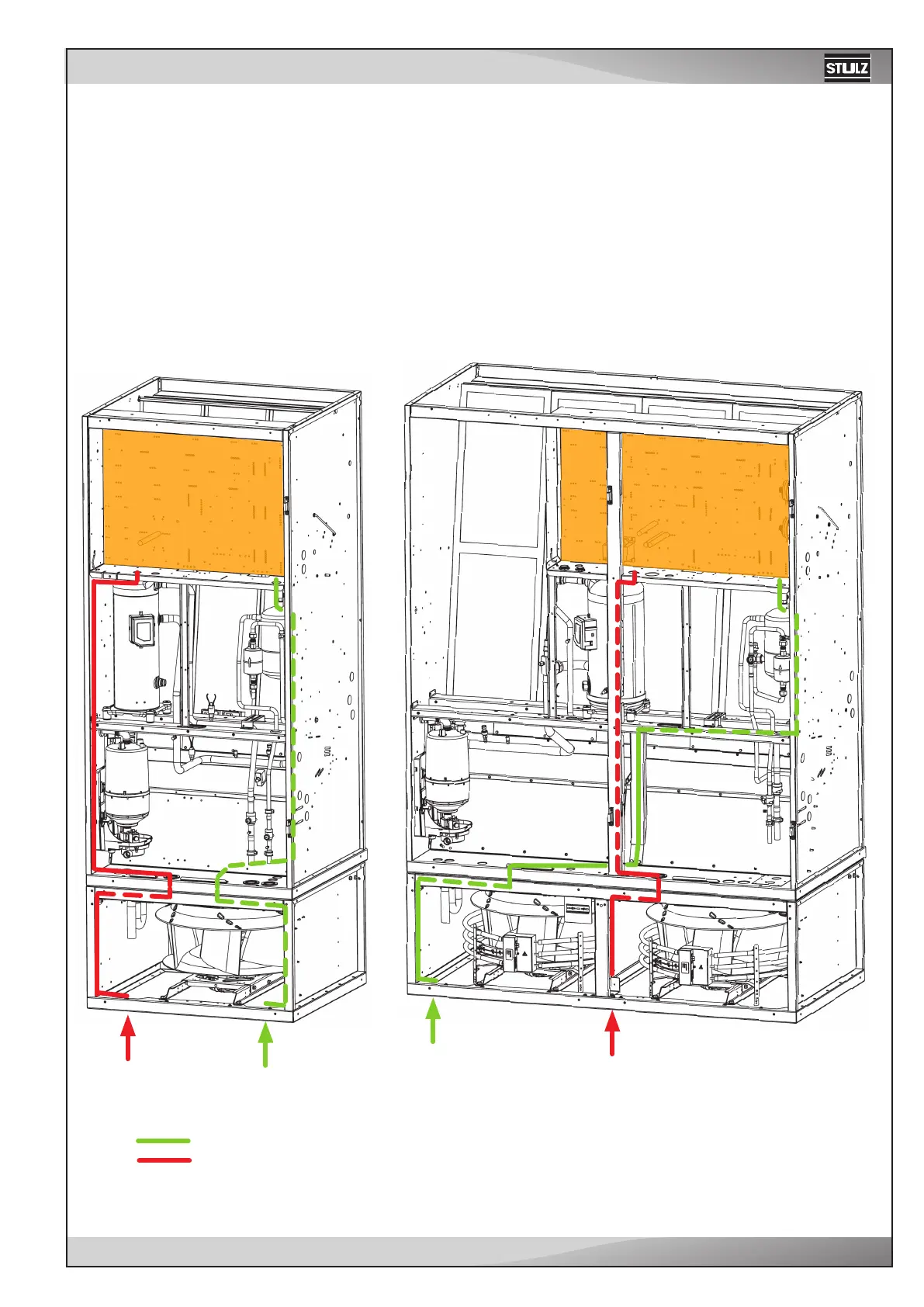 In the bottom of the heat exchanger unit and in the fan unit frame there 2 knock-out holes each, with a diameter of
