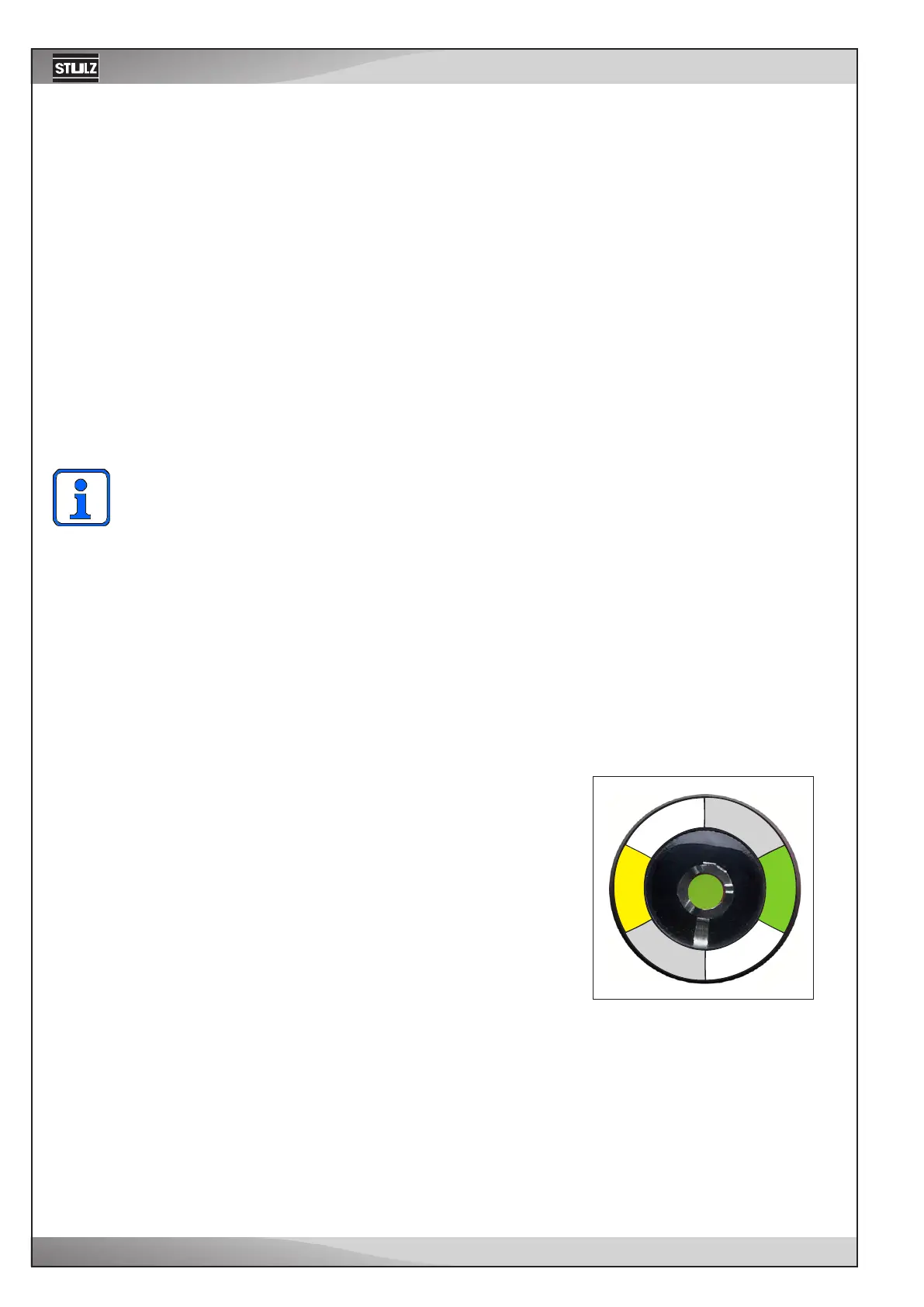 Compare the colour indicator in the centre of the sight glass with the outer ring scale.