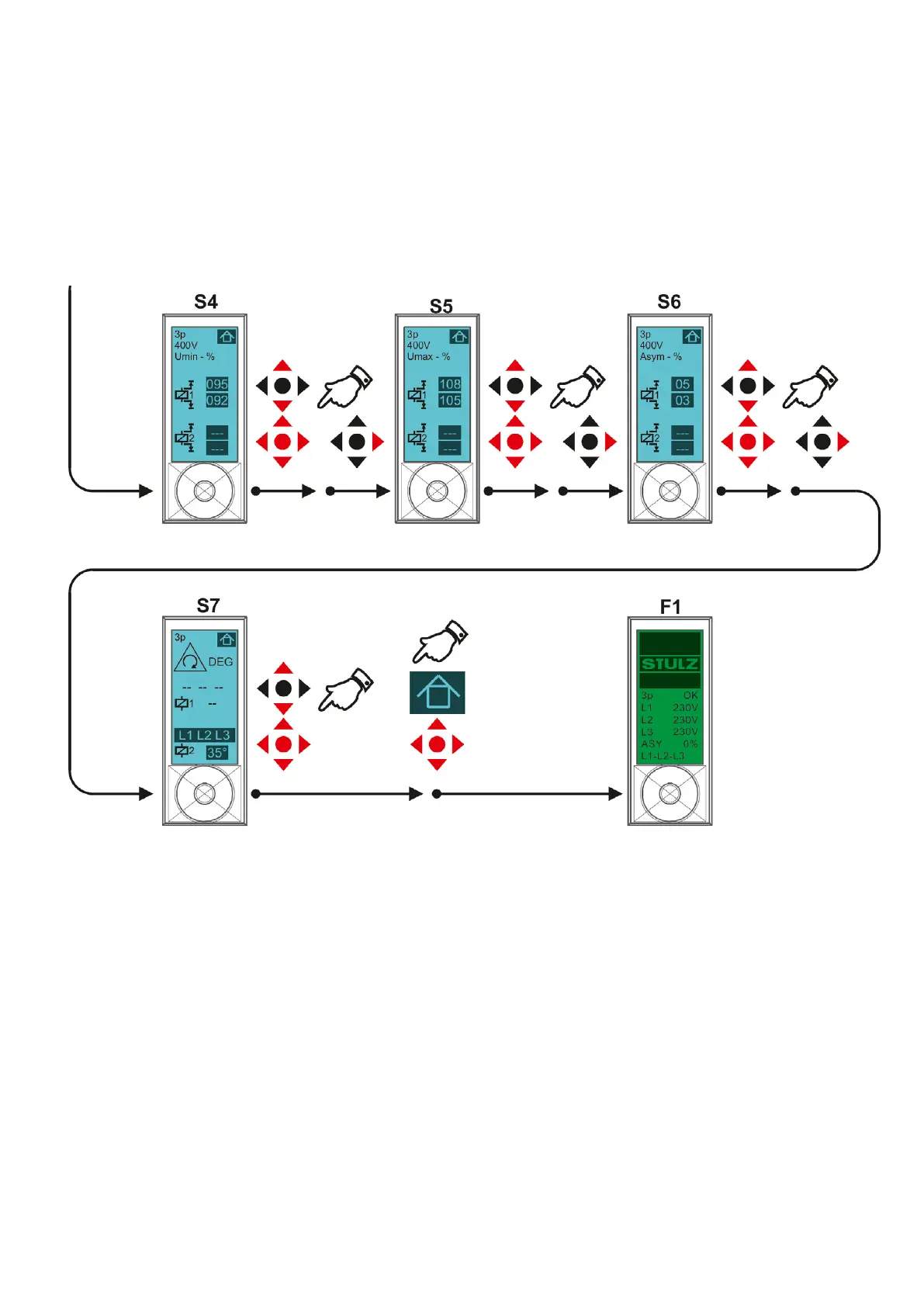 ure, phase balance and correct rotation. In case of failure of supply 1 the unit is switched off. After a lapse of