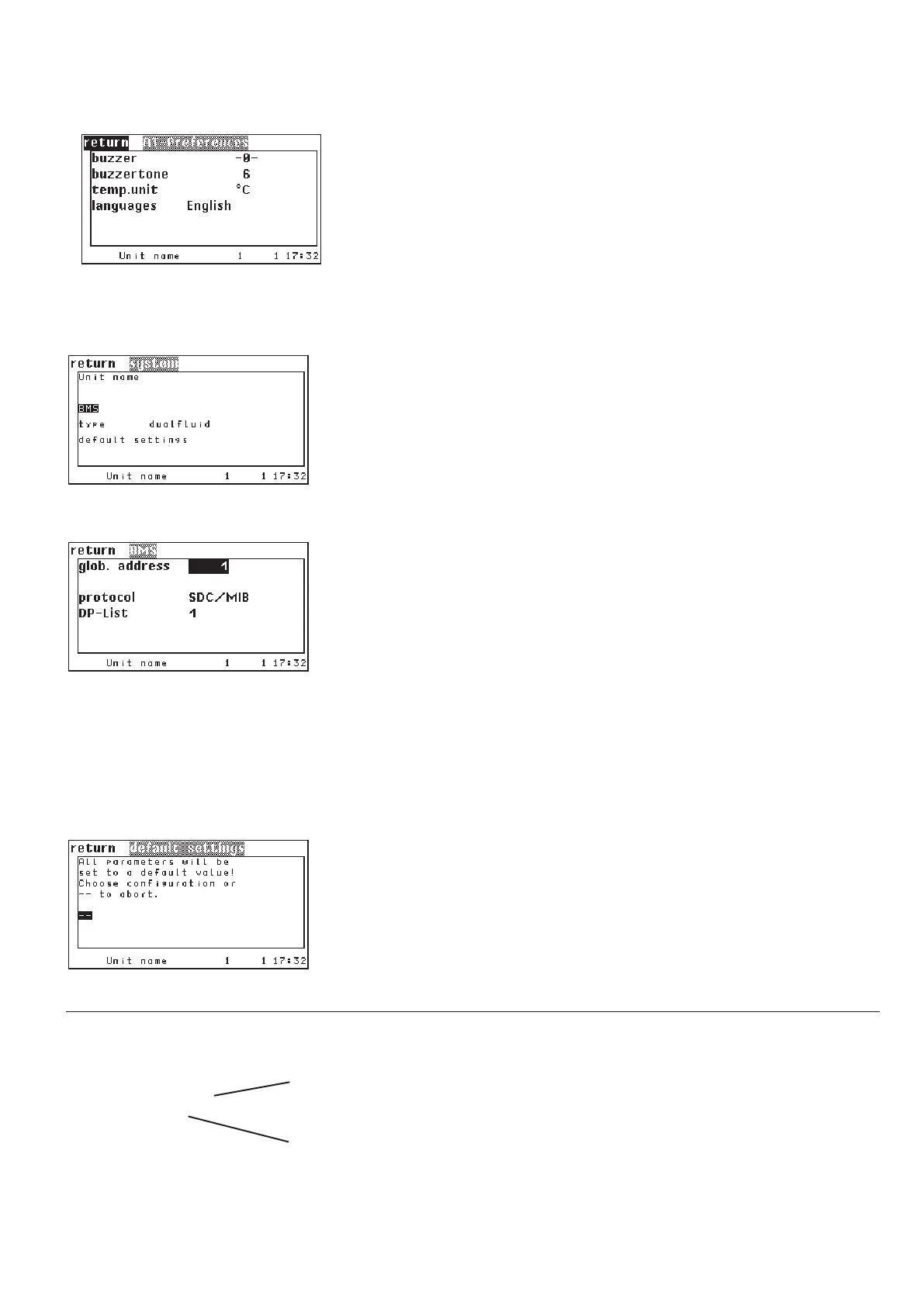 In the first menu line you can enter a unit name