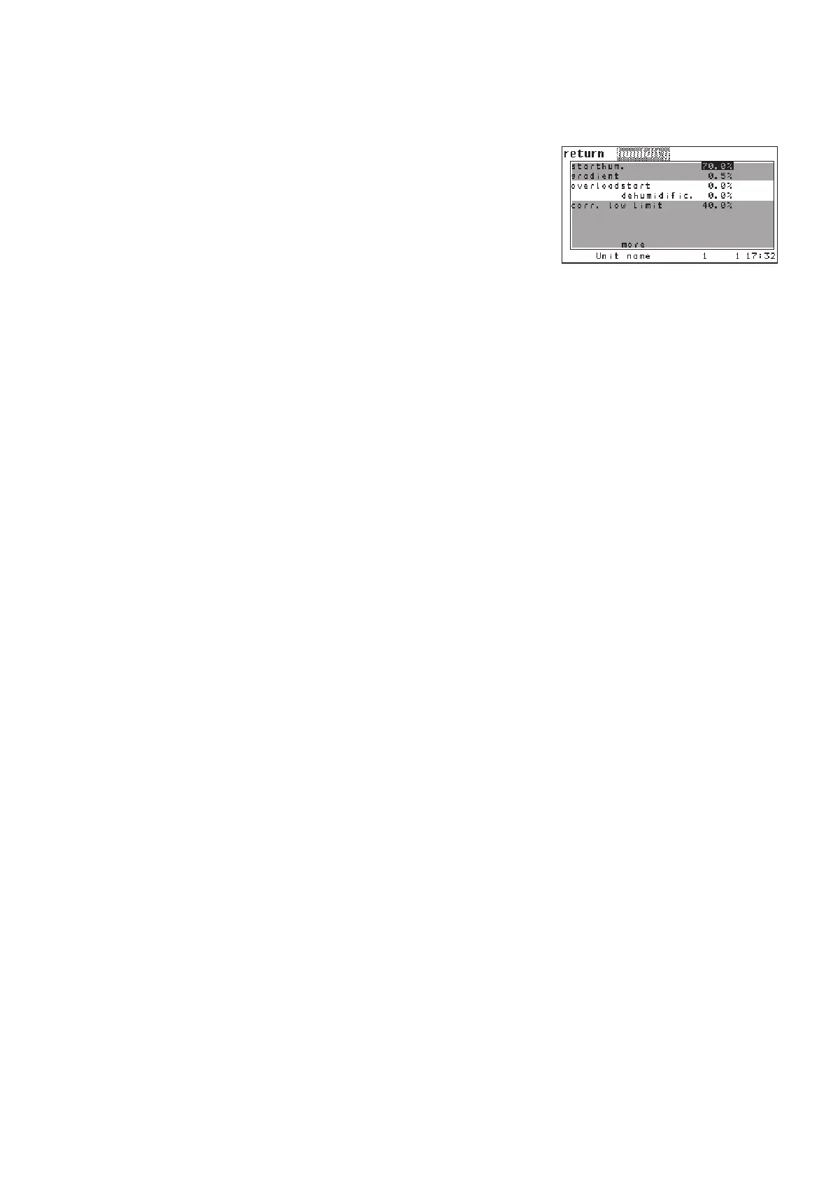 The excess of the setpoint can be adjusted in the shape of a humidity difference. Setting "0" disables the addi-