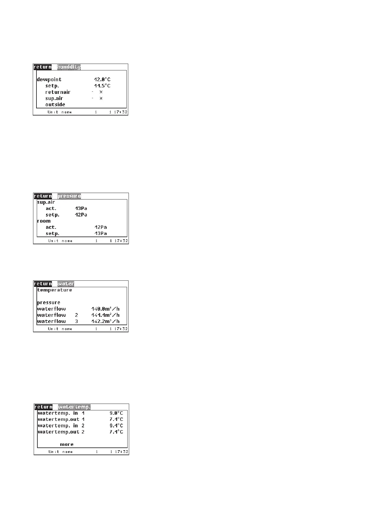 To display the water volume flow the A/C unit must be equipped with volume