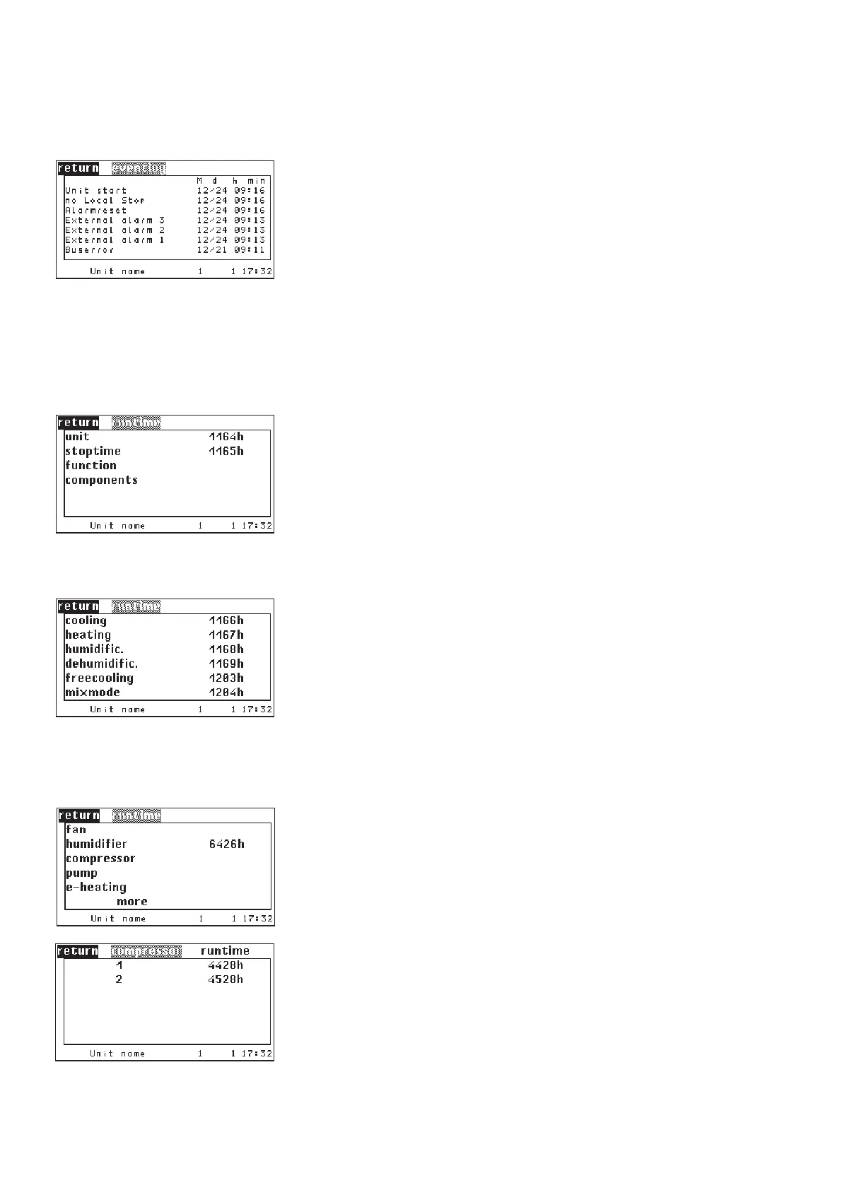 All alarm messages and events of one A/C unit (Unit on/off, watchdog