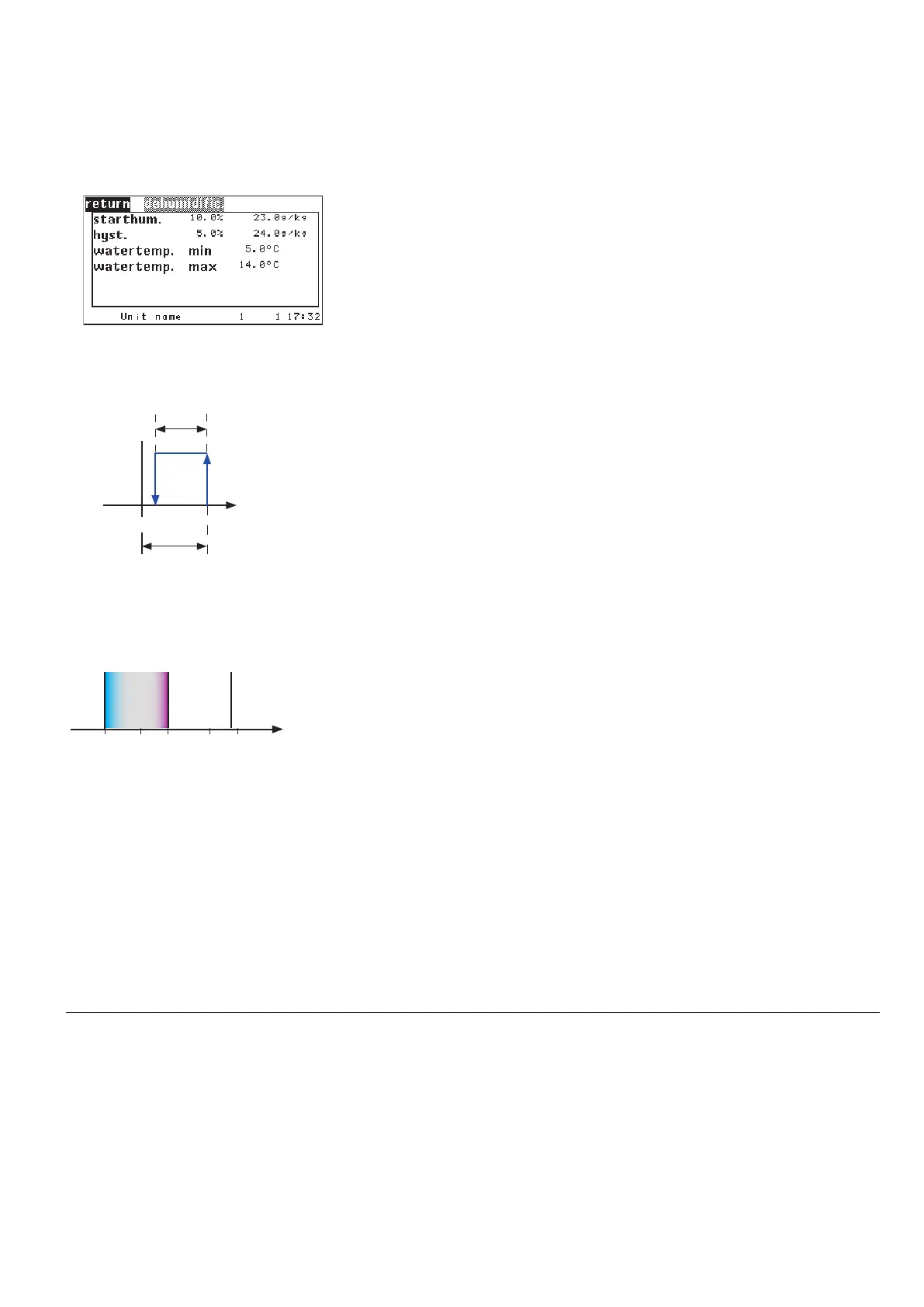 Enter the hysteresis for the dehumidification stop in the second line