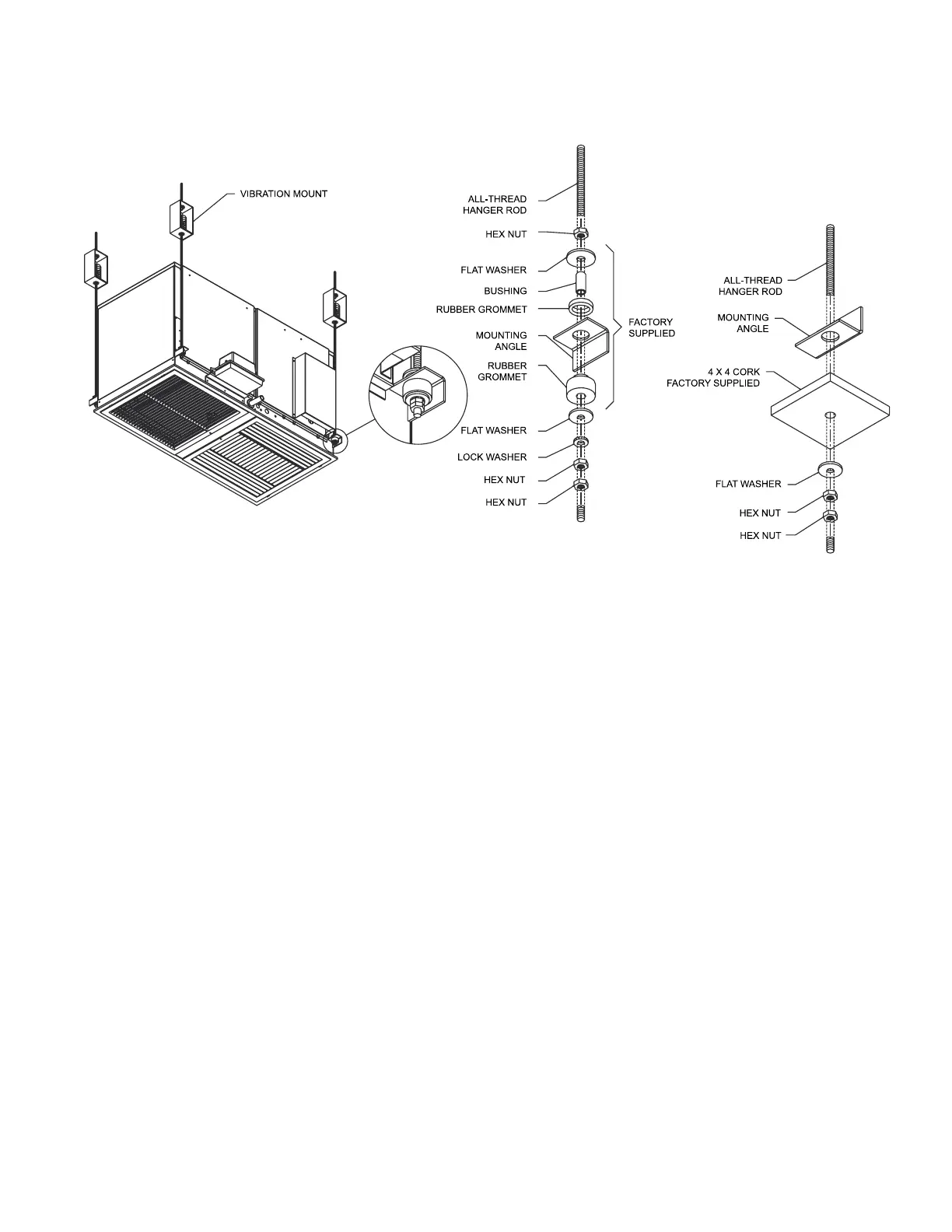 Threaded rods, nuts, and washers (field supplied by others) must be secured so they do not loosen. See