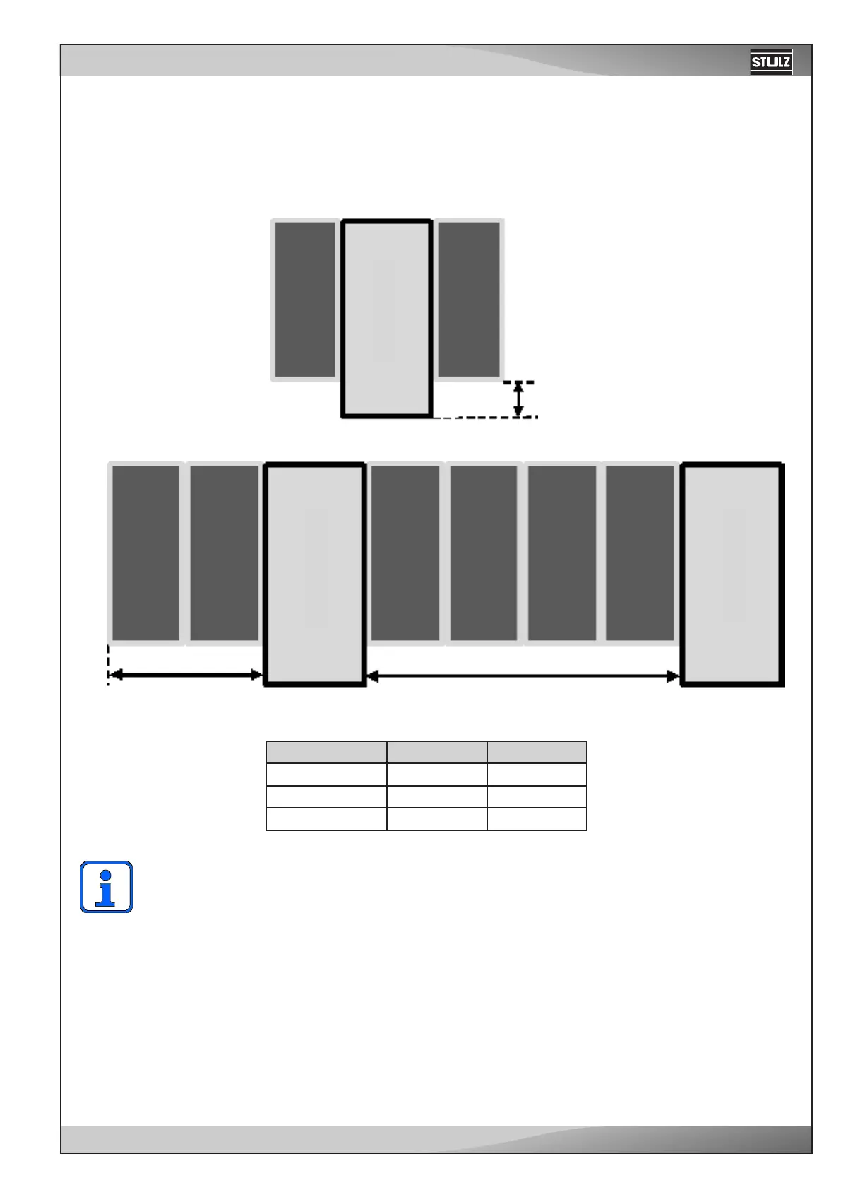 The number of racks served by one CyberRow unit, as well as the distribution of the units in the rows, must be de-