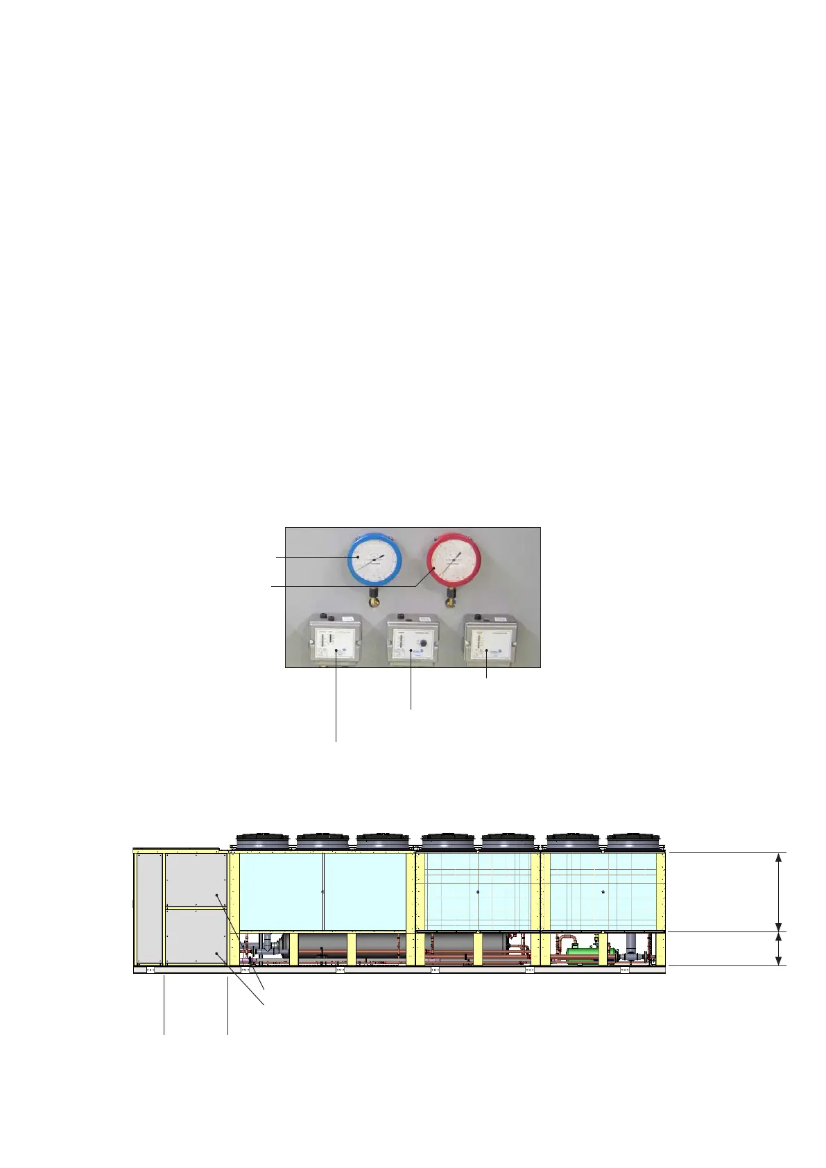 Behind the panels on the right side there is a set of pressure switches and pressure gauges for each refriger-