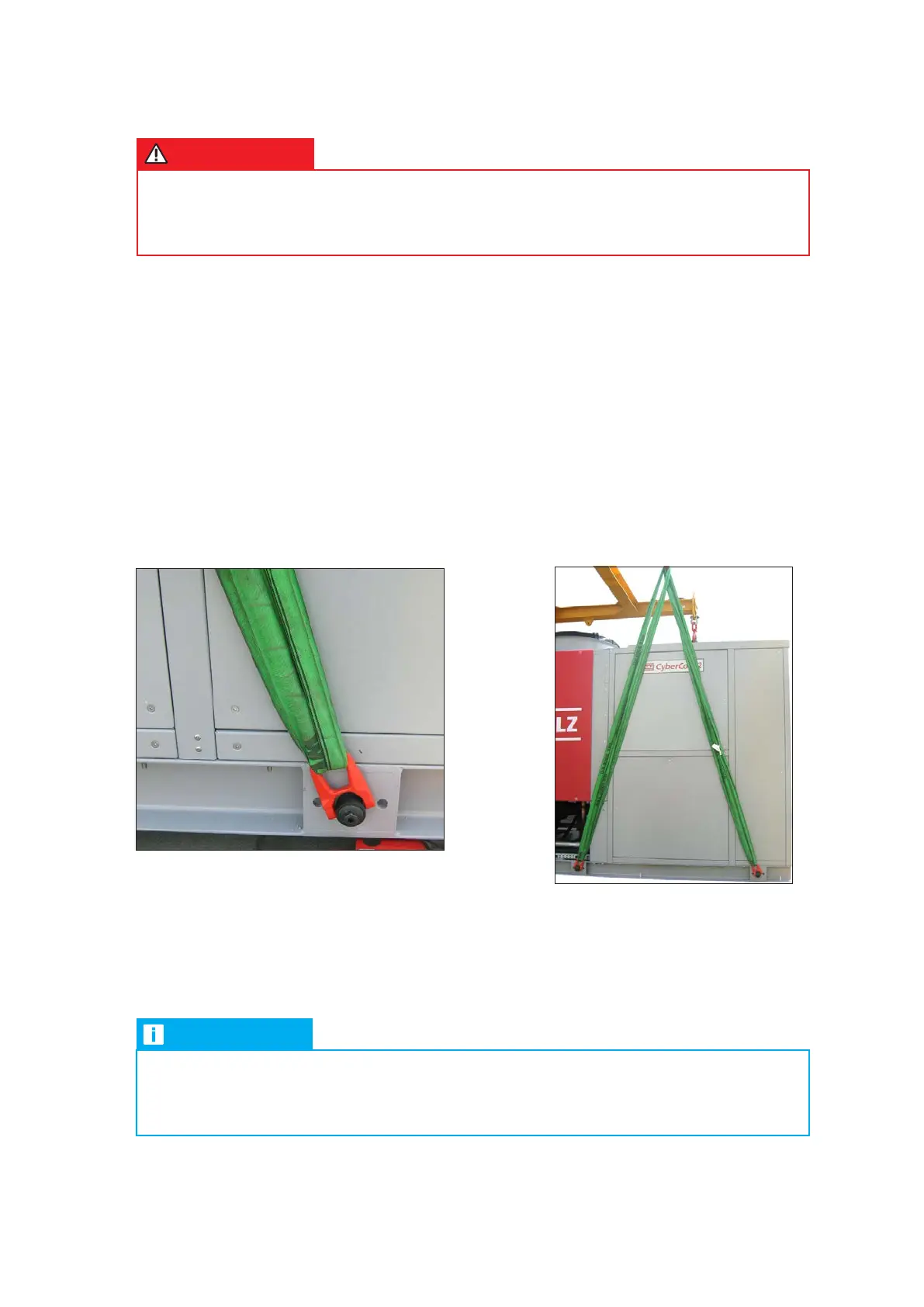 A defective lifting device can lead to the uncontrolled fall of the chiller unit.