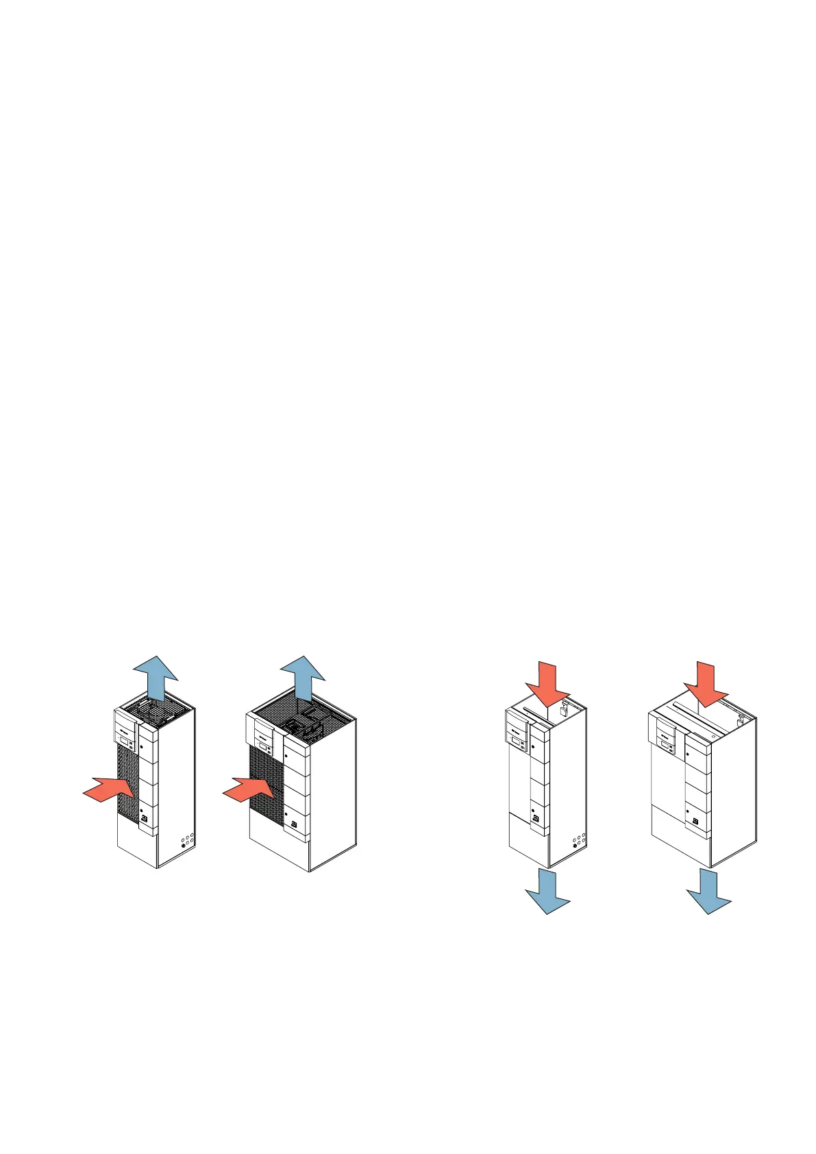 In Upflow units, the warm air is sucked into the front of the indoor unit. The cold air is blown out upwards or