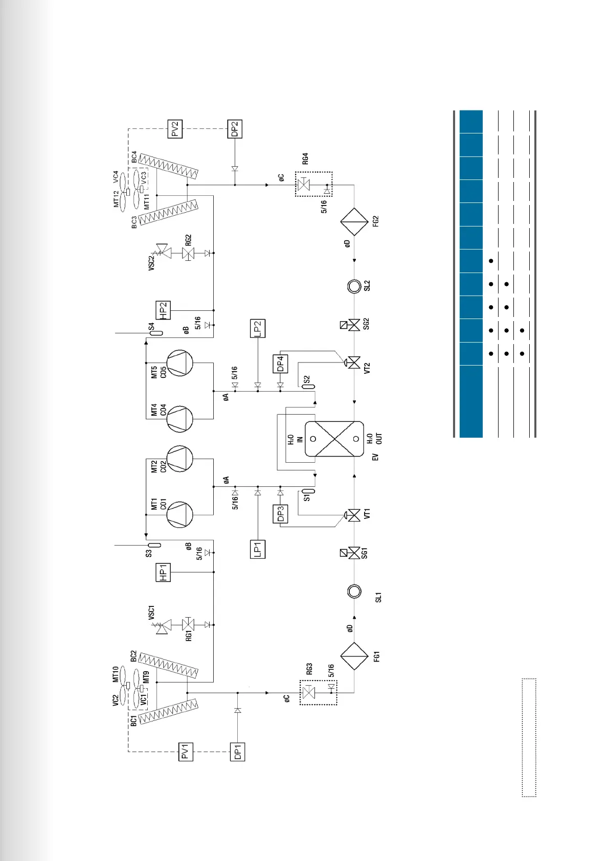 Four compressors, two condensing modules