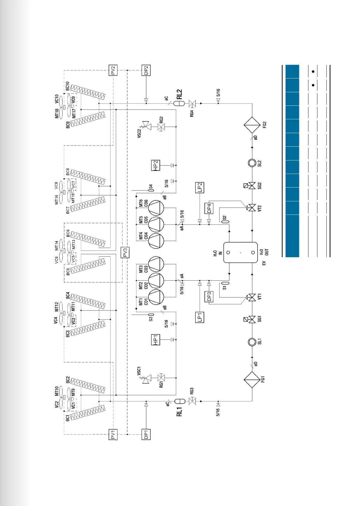 Shell and tube evaporator (EV)