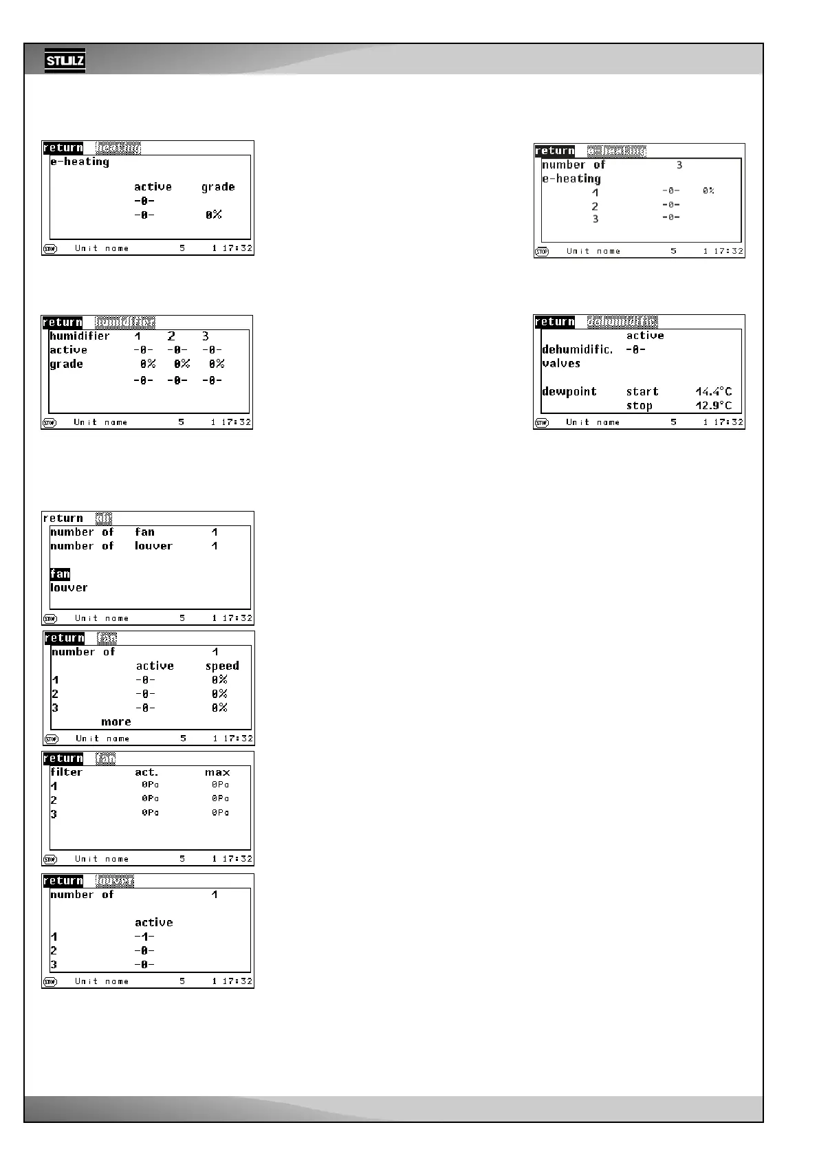 menus display the operating status of the fans