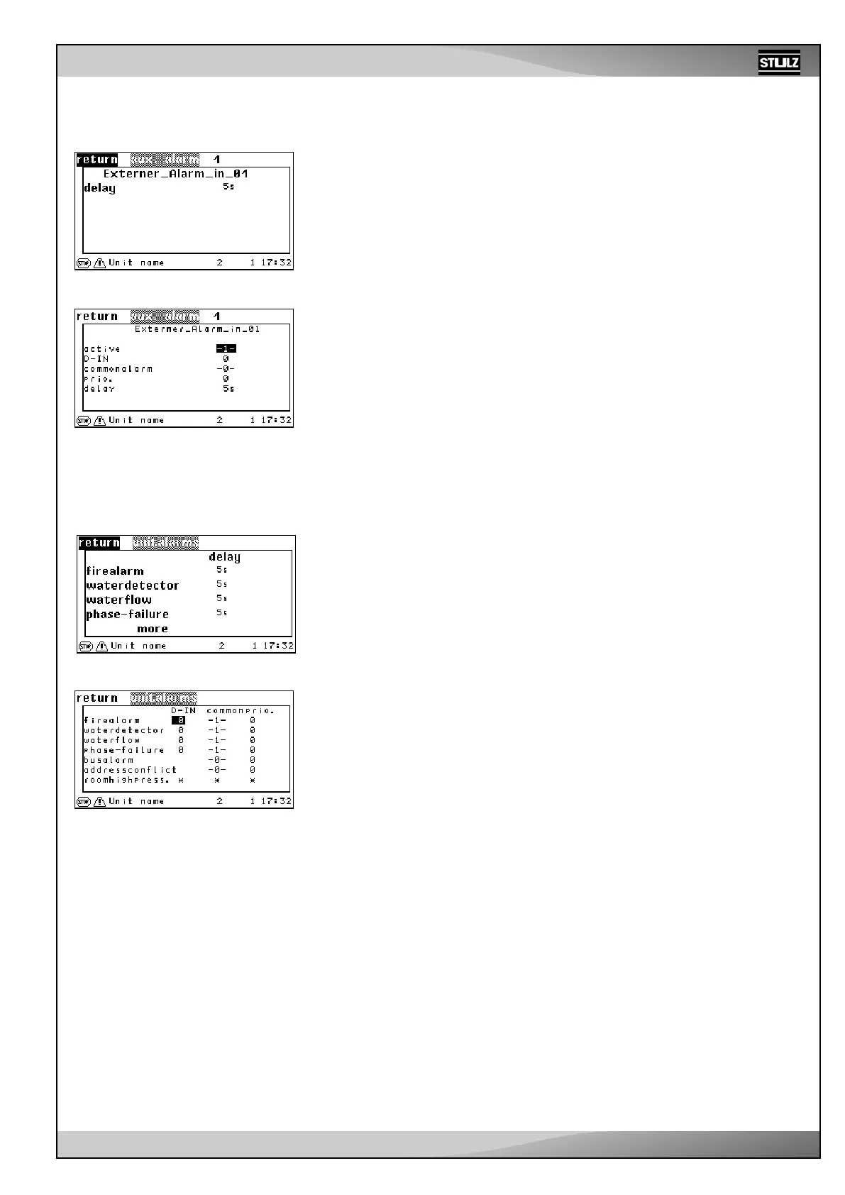 You can adjust the alarm time delay for the following unit alarms: fire alarm ➎, water