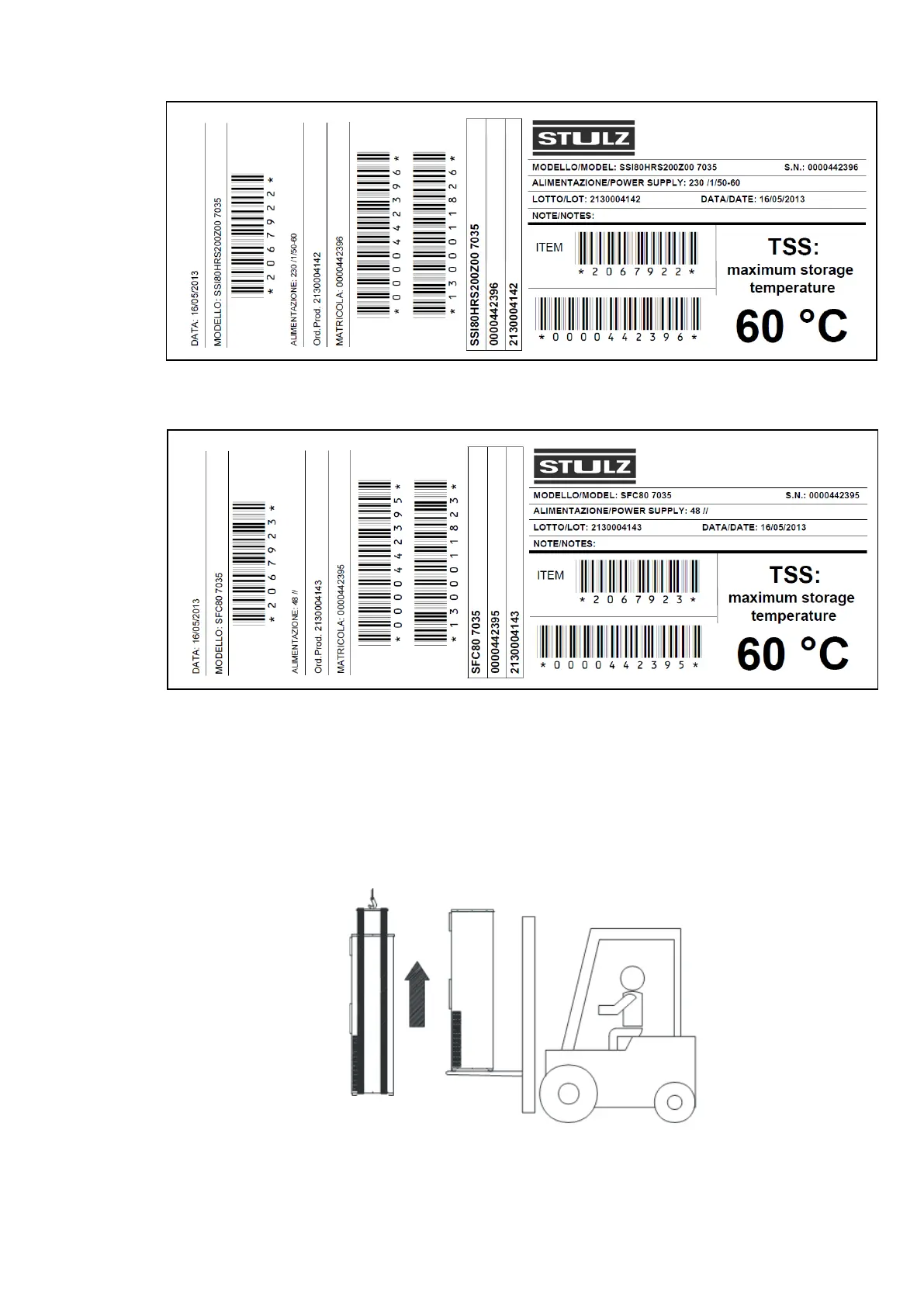 Handle these units, when they are packaged, using a fork lift. When they are not packaged, use a