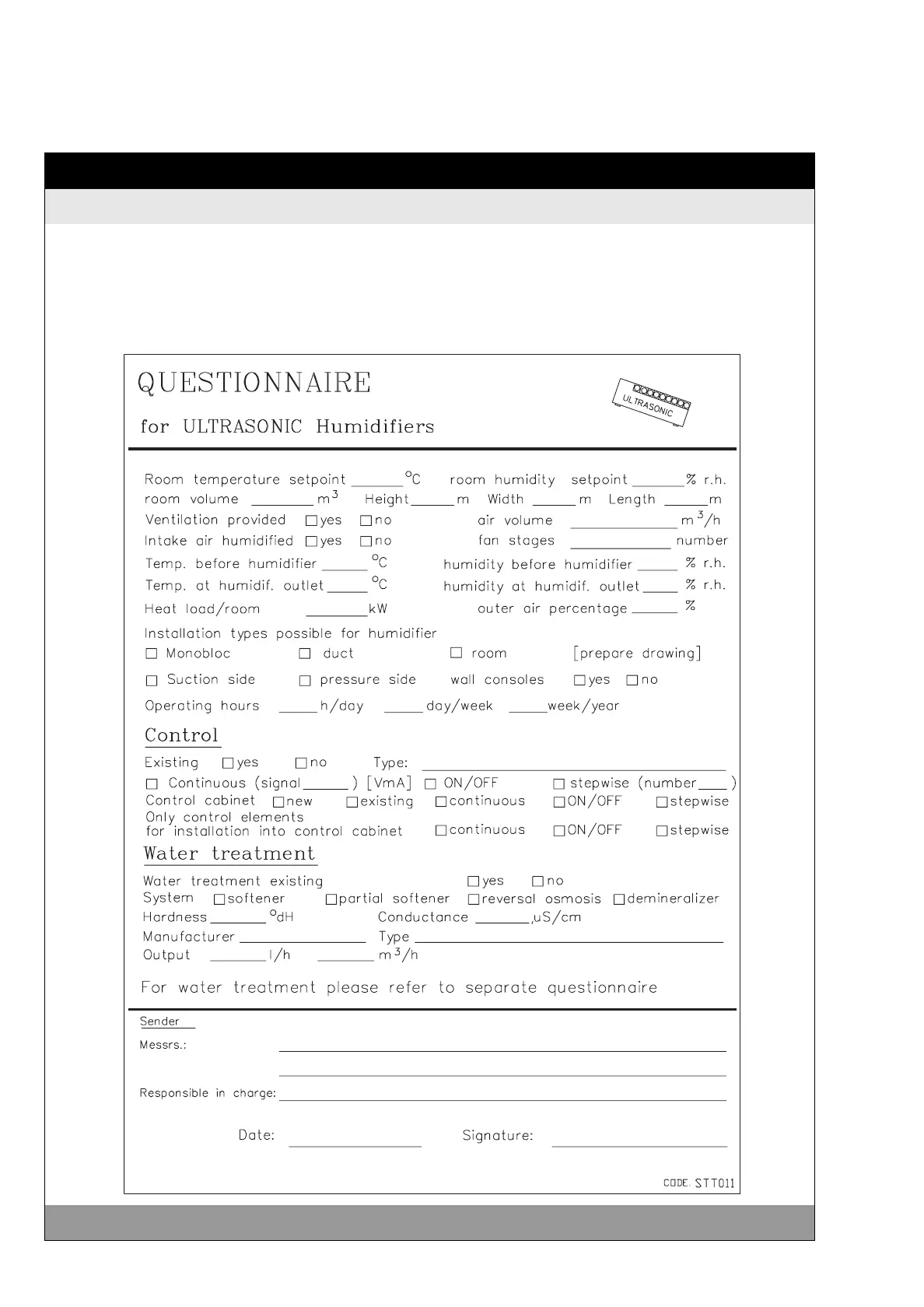 Stulz ULTRASONIC - Questionnaire Ultrasonic Humidifiers