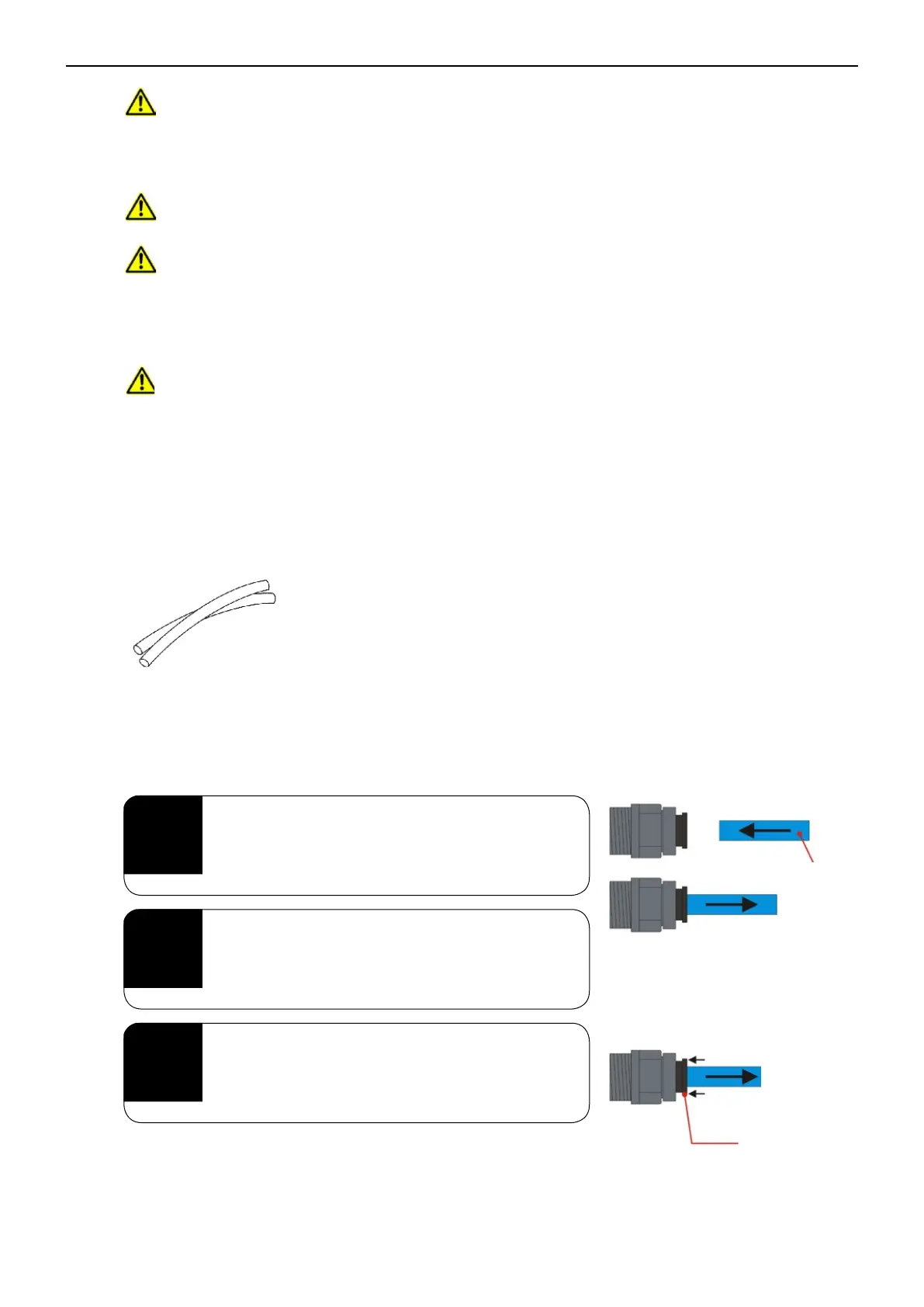 To connect the supplied pressure hoses, cut the ends of the hoses straight using a sharp pipe cutter.