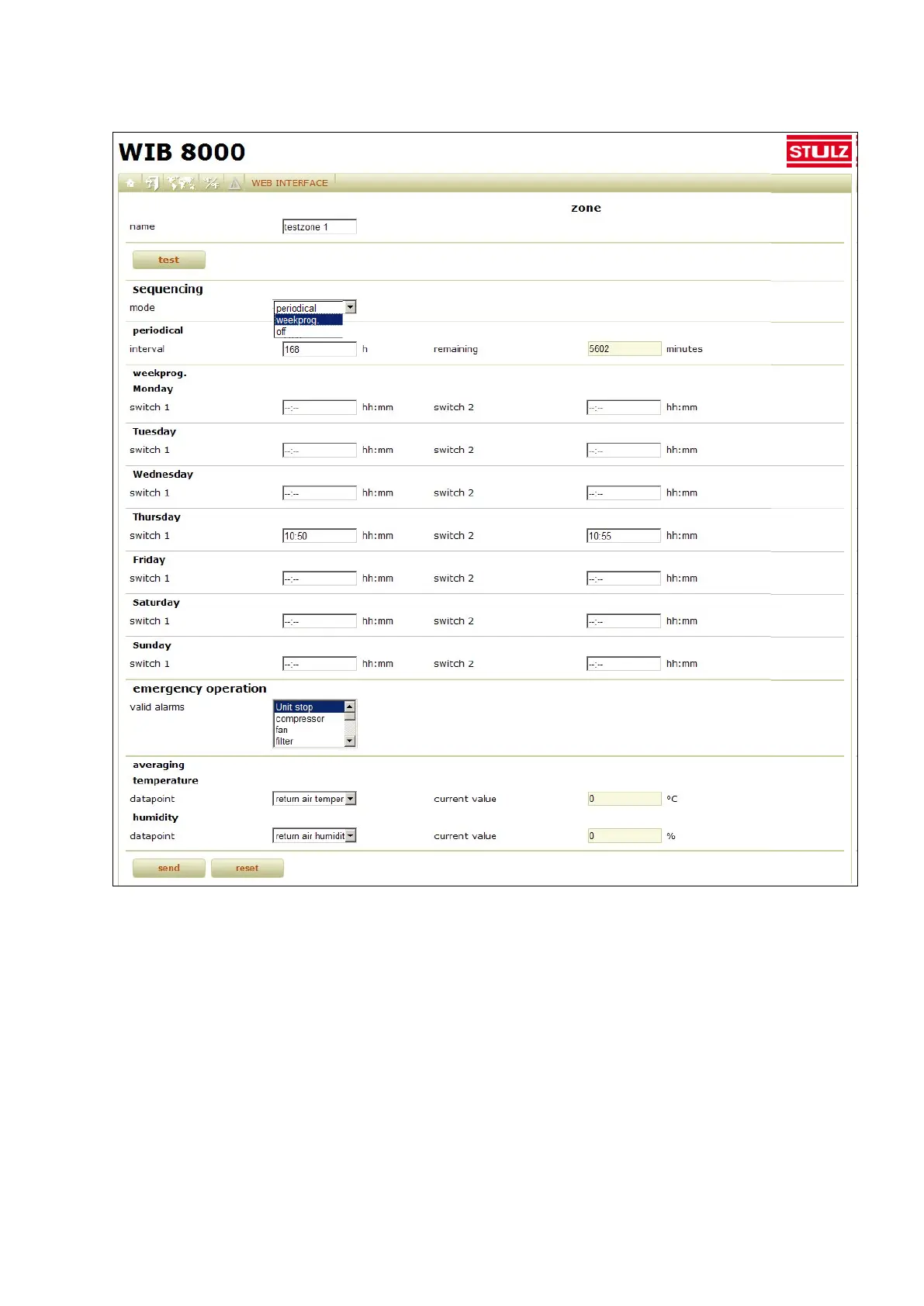 Zone configuration (optional) (Menu: Web Interface/zone)