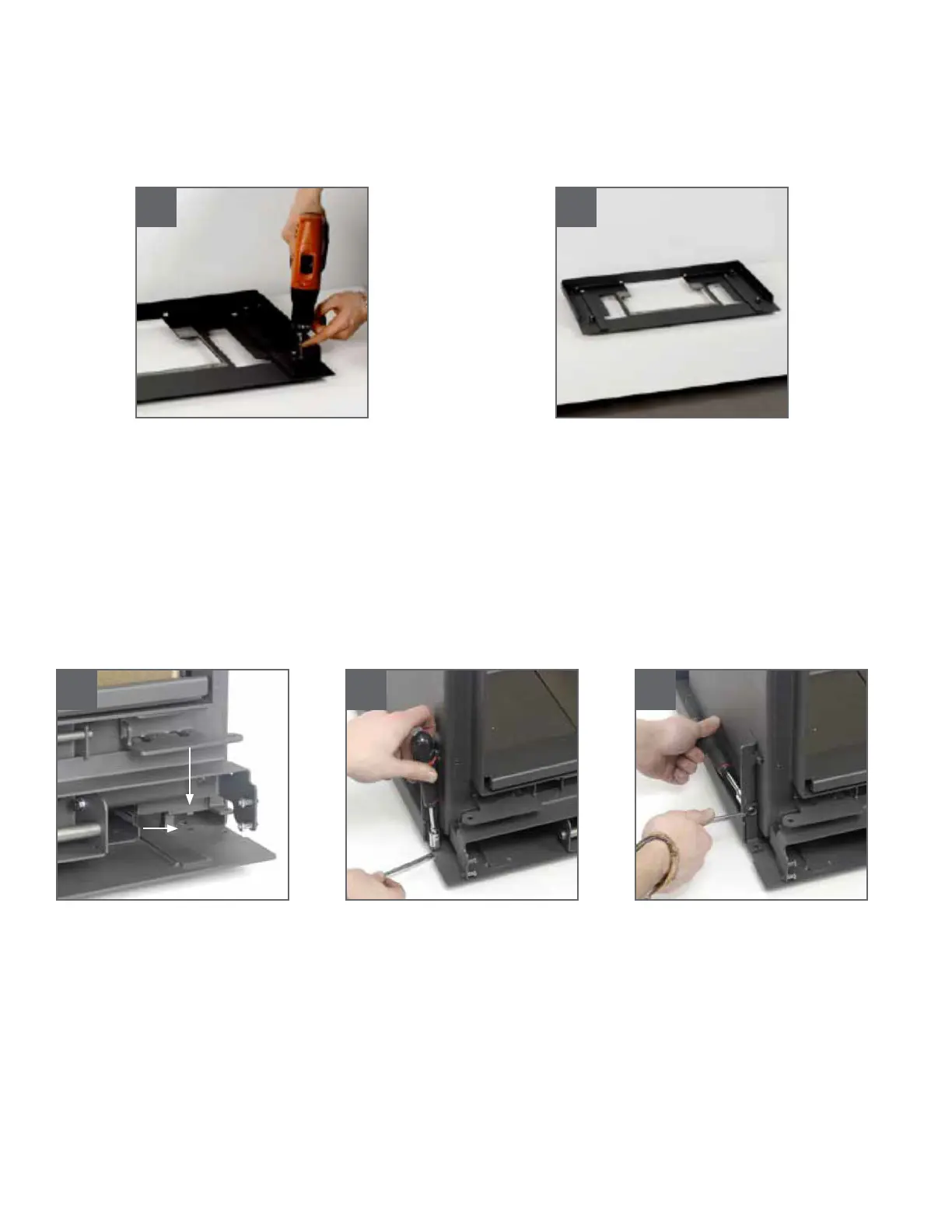 Fixer le foyer sur le plateau par vis et écroux [photos 2, 3