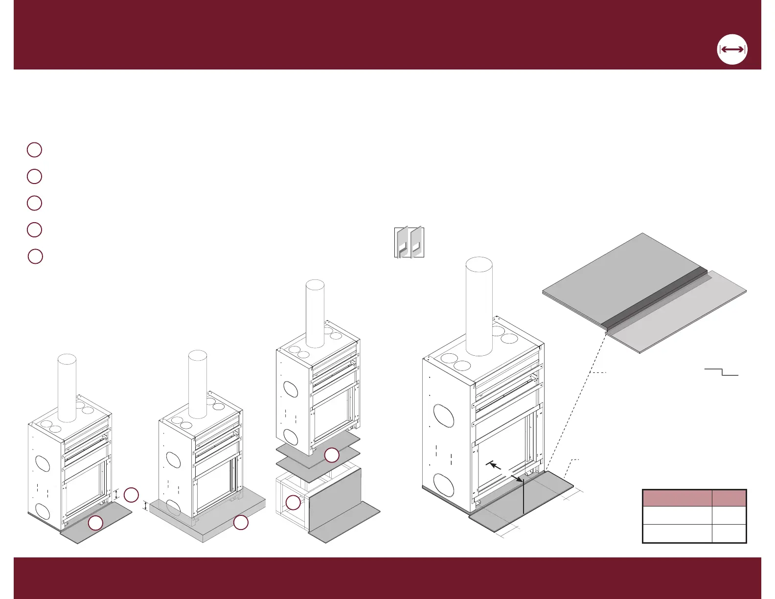 All components located in the hearth extension zone, for a height of 6 ½’’ from