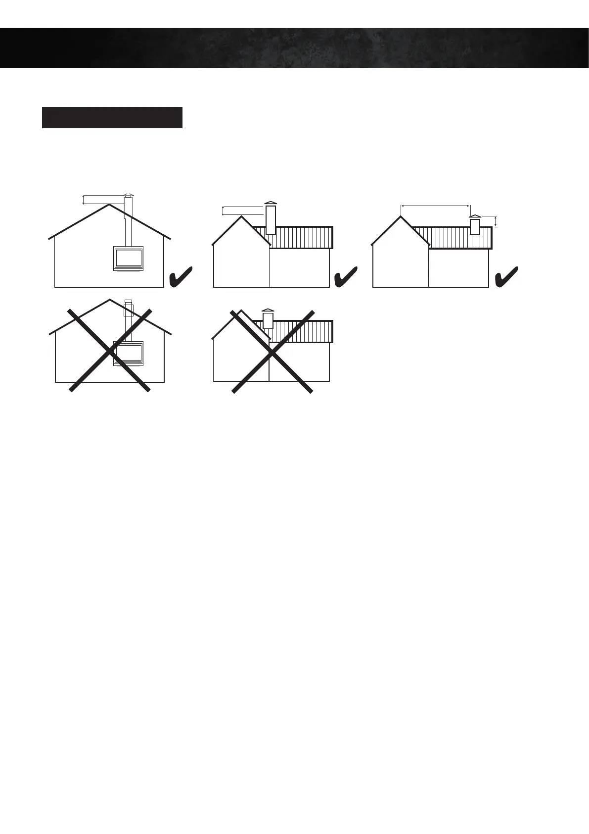 The top of the flue must be 400mm higher than the highest point of the roof. Alternatively, there must be a