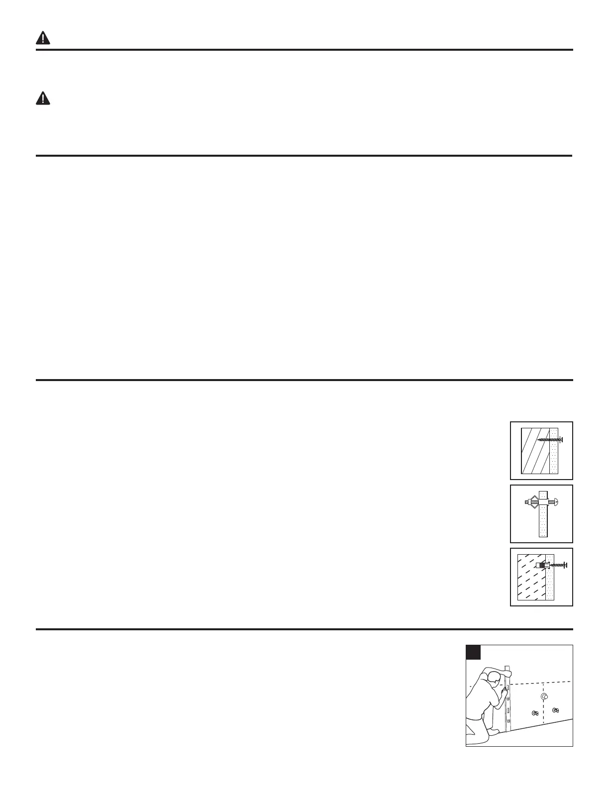STUD WALL: Secure to wall with #12 x 3 in. screws with a washer at stud locations.