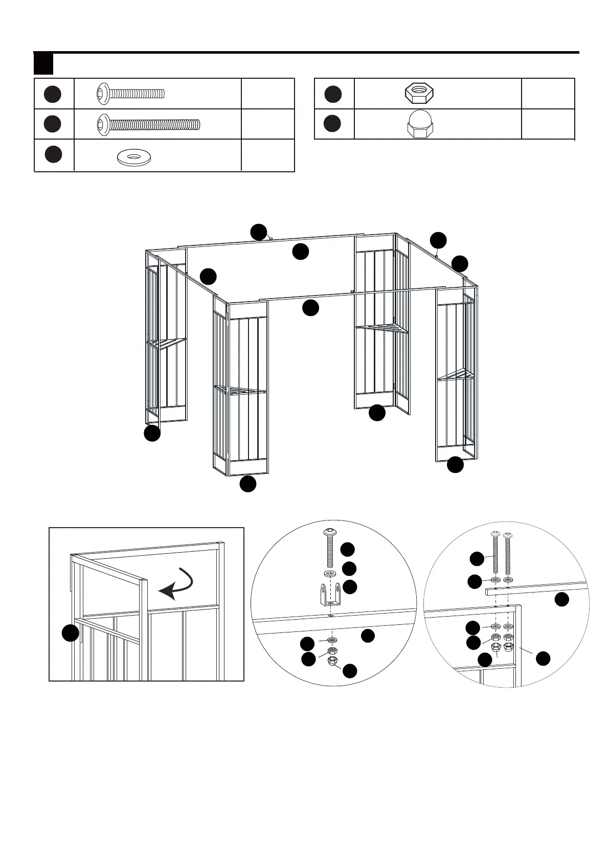 connect the crossbeam (B1) onto the corner panel (A) by bolt (BB), flat washers (DD), nut (EE).