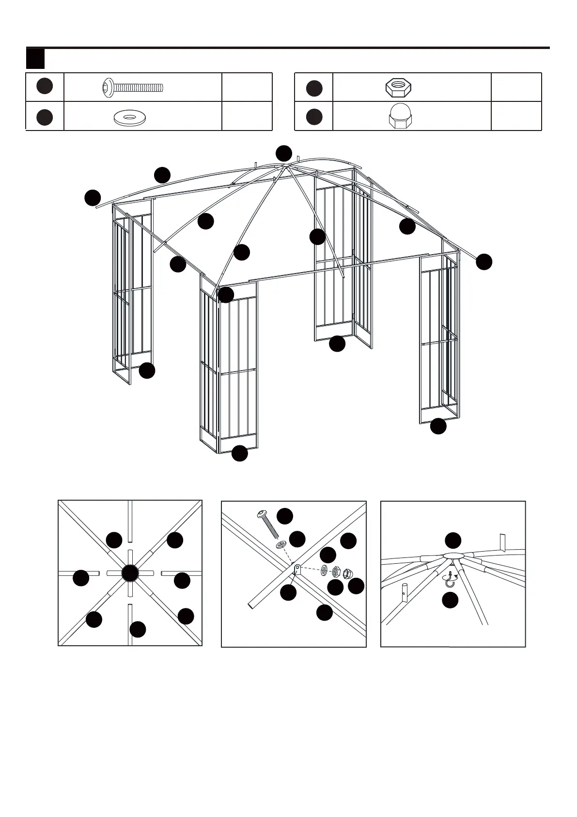 3.1. Insert the top part of middle bar (J) into top connector (G). Repeat for all middle bars (J).