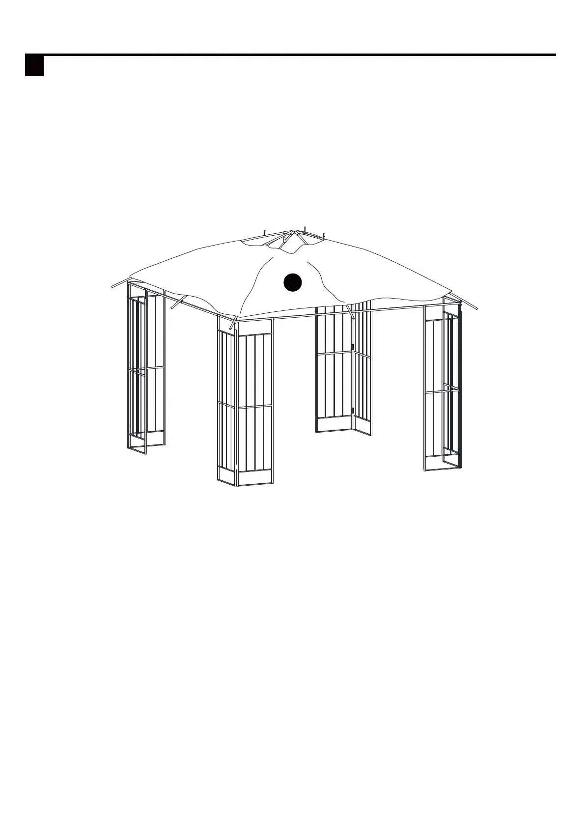 4. Place large canopy (M) on top of gazebo assembly. Do not spread canopy yet.