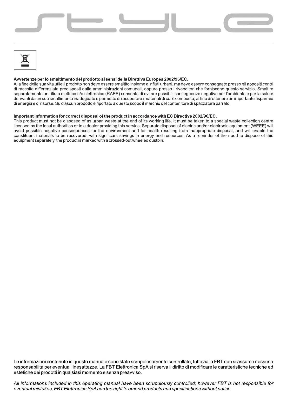 STYLE P 50 - Product Disposal and Disclaimer; Disposal Information; Disclaimer and Modifications