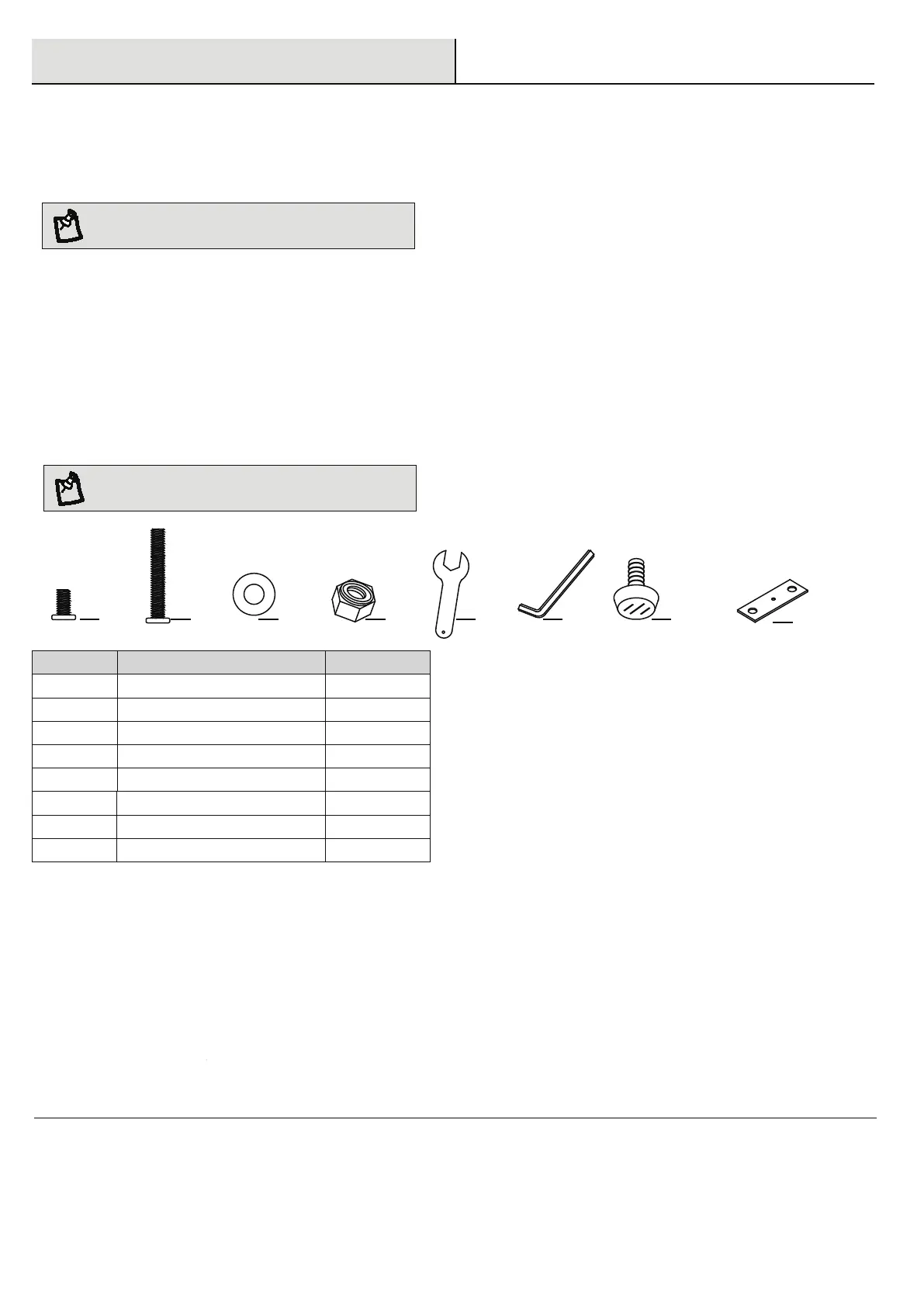 Ensure all parts and components are present before beginning assembly.
