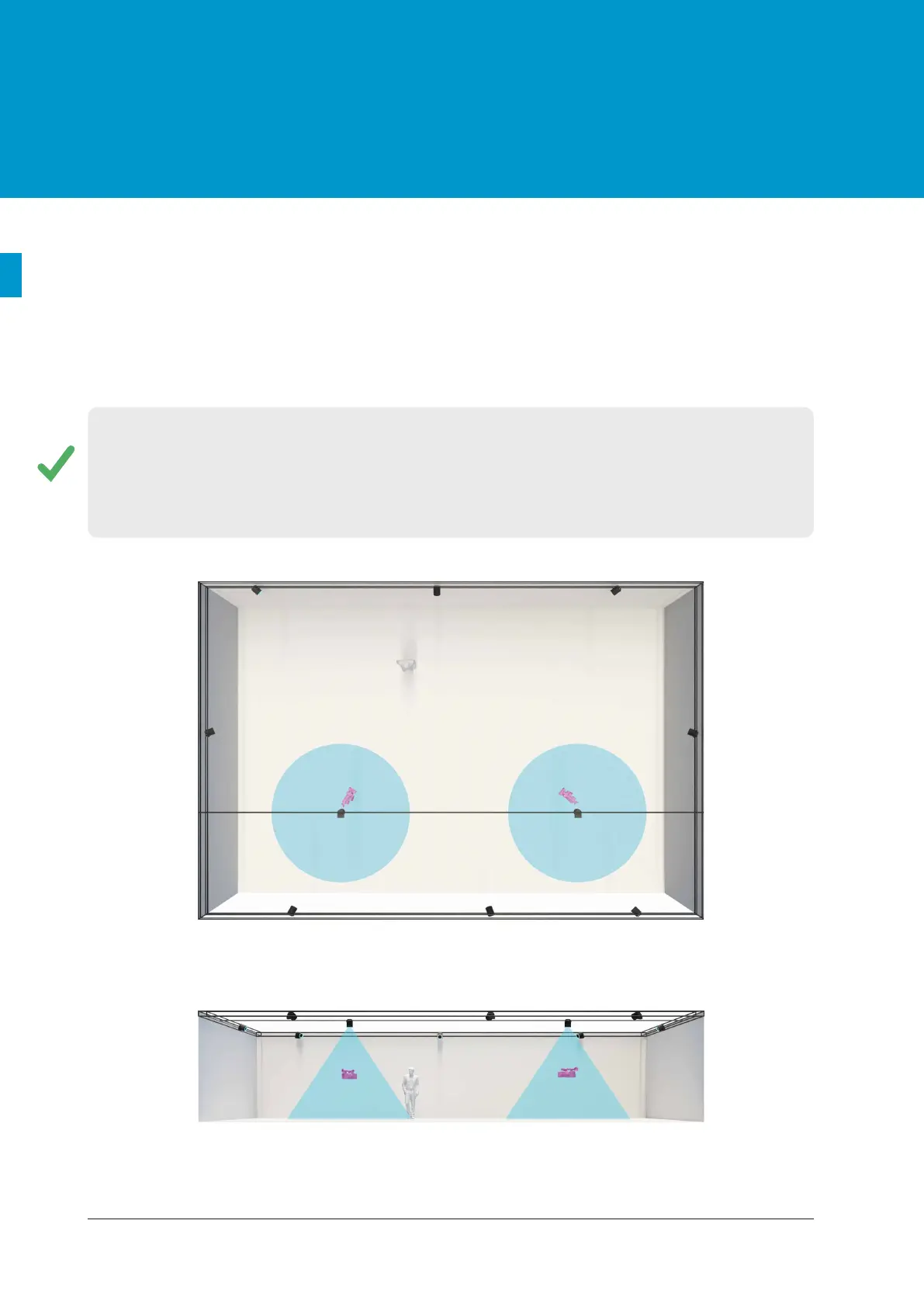 middle of a tracked area, mounted directionally so that each LED beacon is being covered