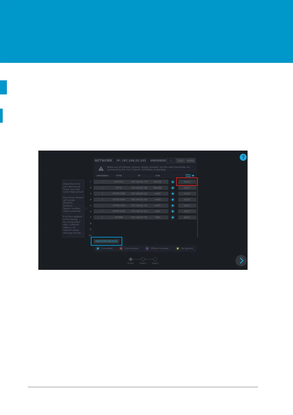 a maximum of 30 seconds. PURPLE (•) color represent devices that do not have the same Universe number