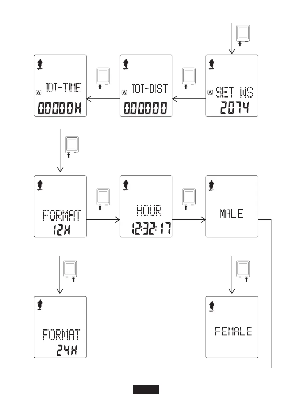 Suaoki 9500 - Setting Flow: Core Data Setup; Total Distance and Ride Time; Wheel Circumference; Clock and Personal Data