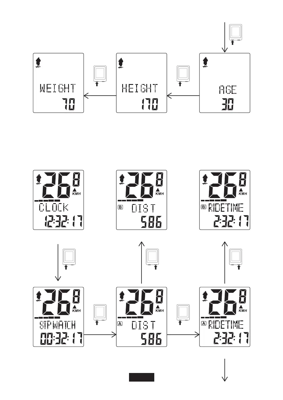 Suaoki 9500 - Operation Modes: Personal Data; Personal Data Input; Bike Data Display Overview