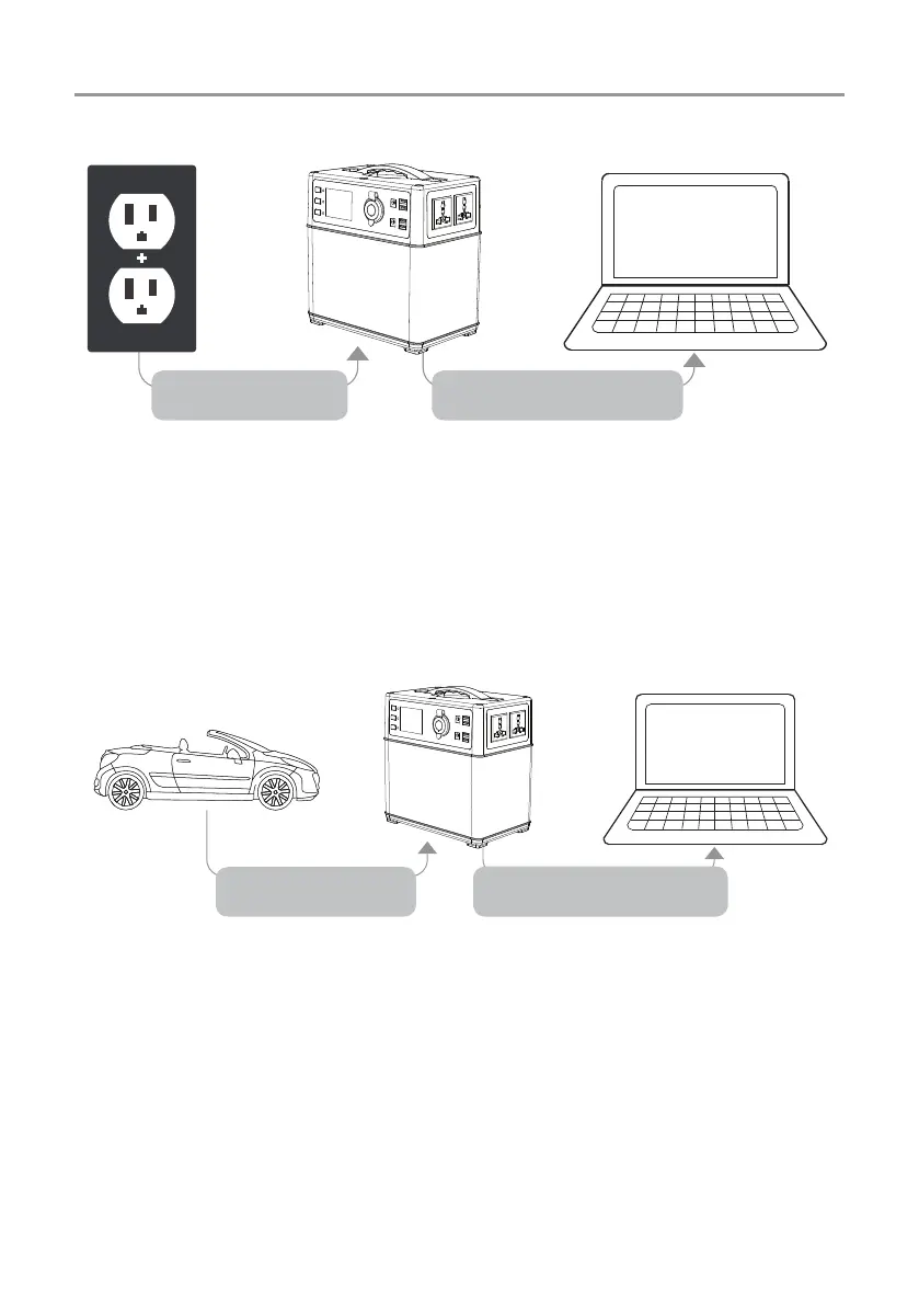 ディスプレイから充電状態がわかります。アダプタでポータブルパワーサプライを充電すると、