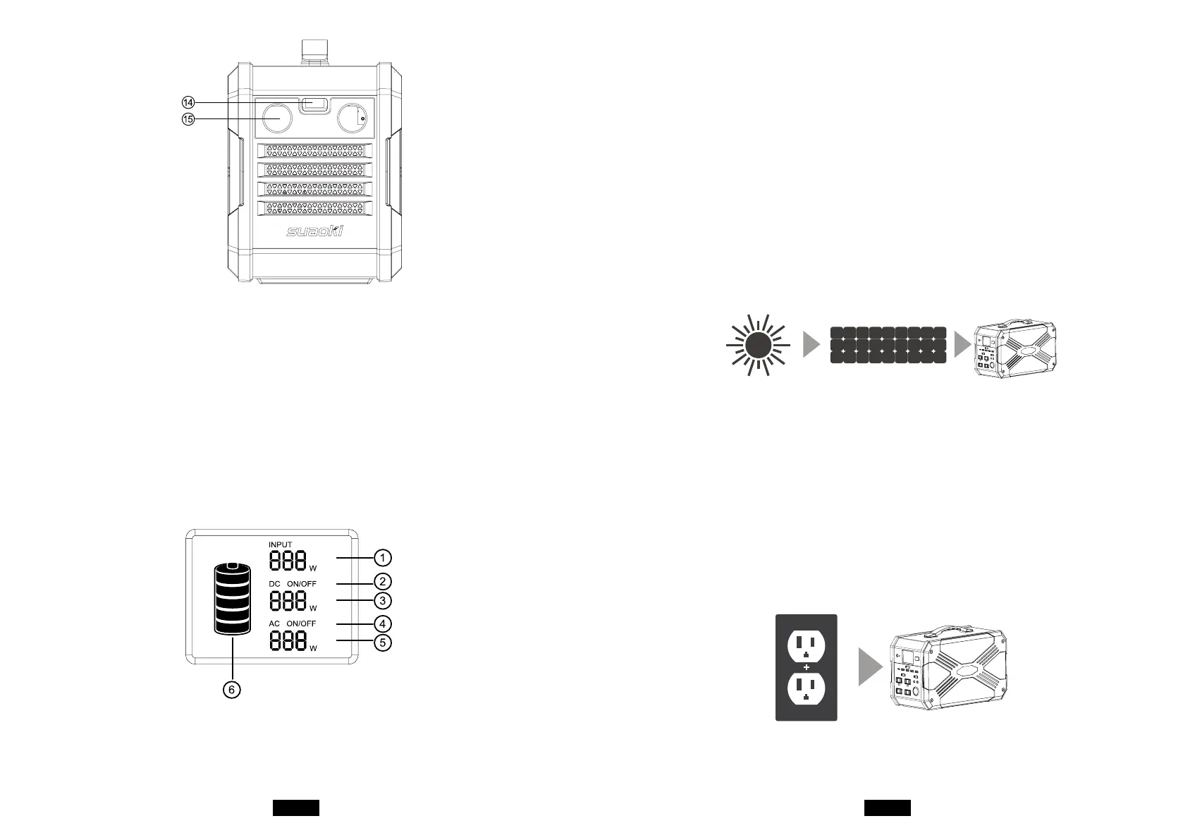 7. USB-A 5V / 3A-Ausgangsanschluss 15. LED-Taschenlampe
