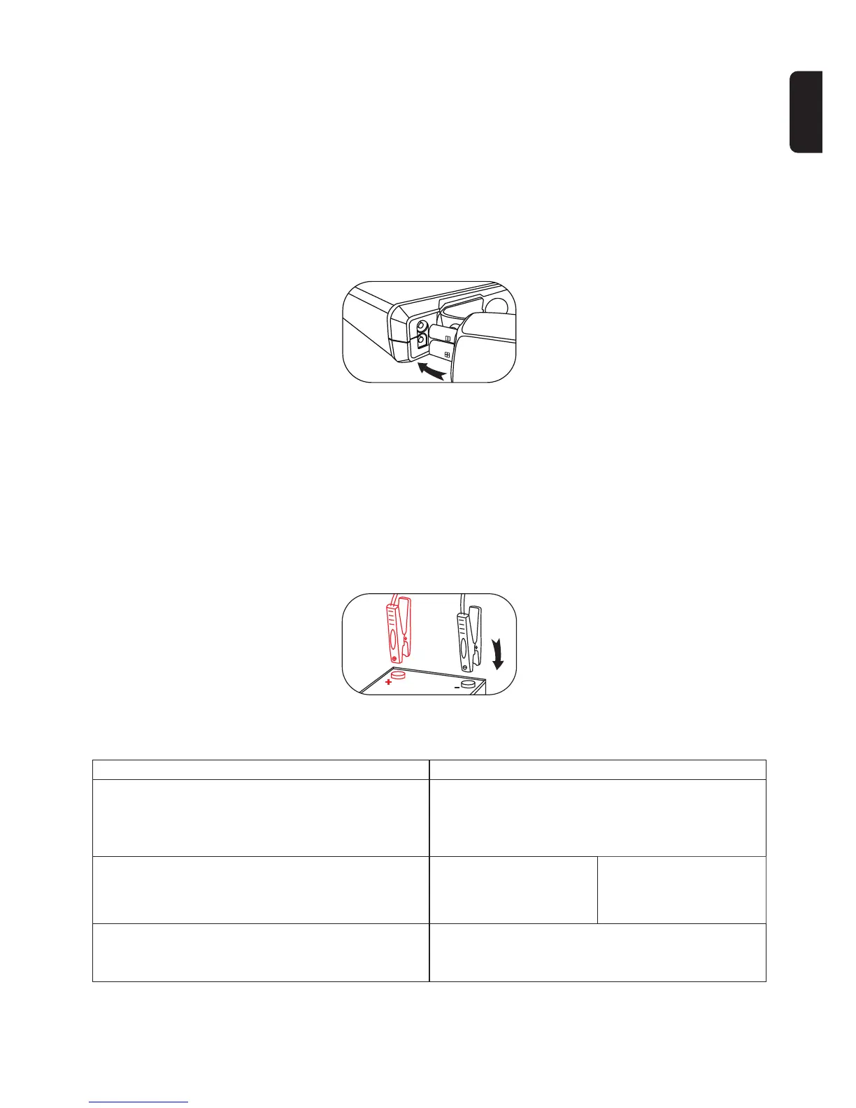 Connect the red clamp to the positive terminal (+) of the vehicle’s battery and