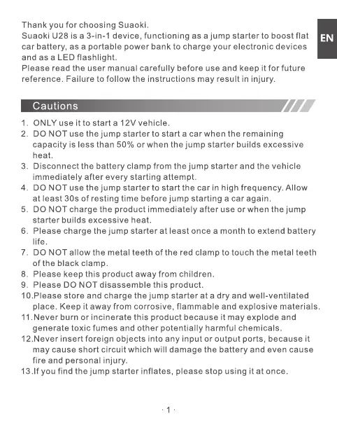 more than 50% before jump-starting a vehicle. Otherwise, the battery