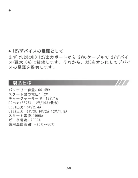 1.スイッチボタンを1回押してジャンプスタータのバッテリレベルを表