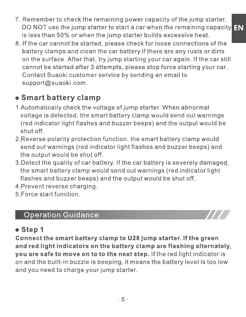 Suaoki U28 - Instructions - Smart Clamp and Operation; Smart Battery Clamp Features; Operation Guidance